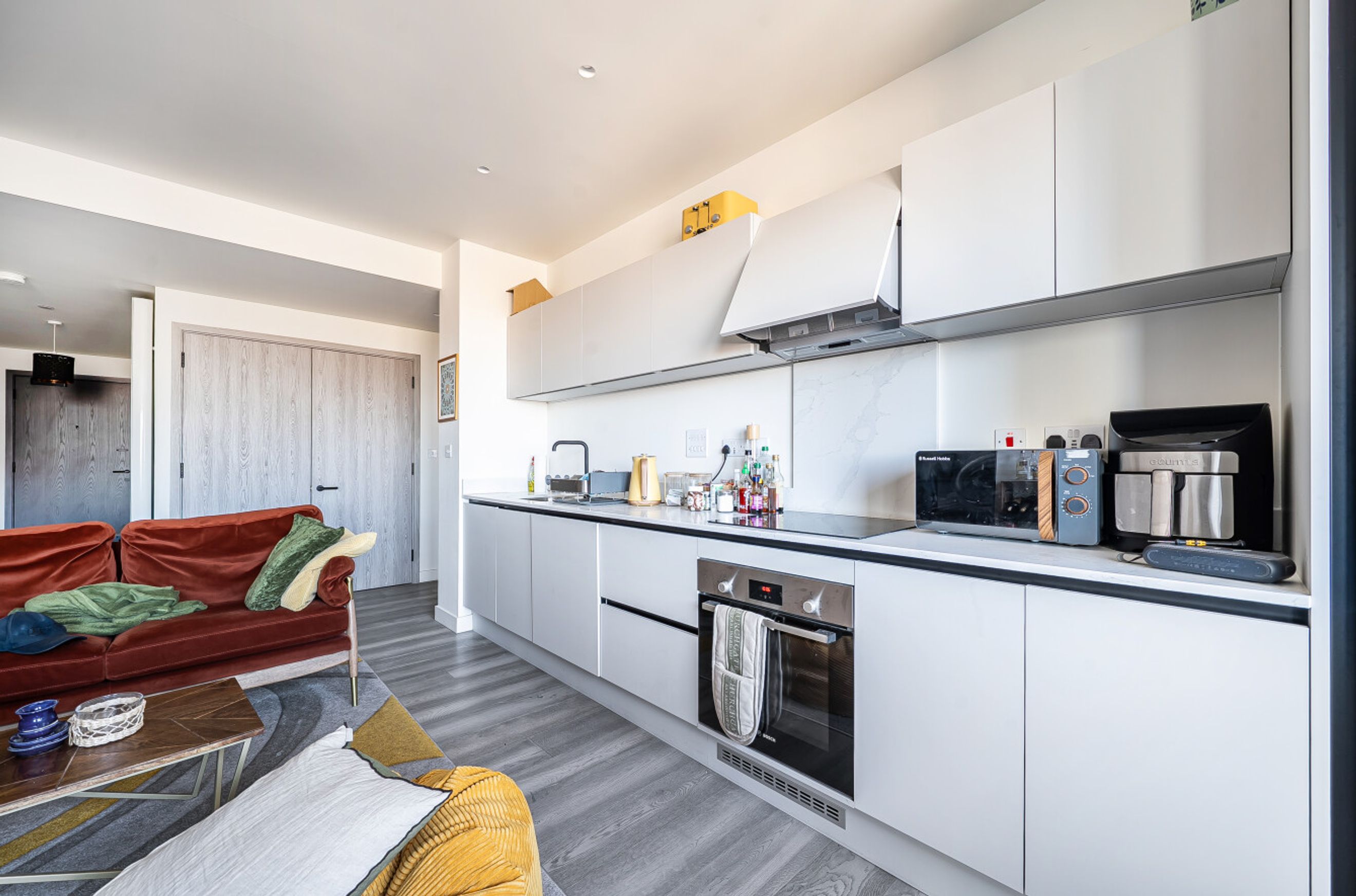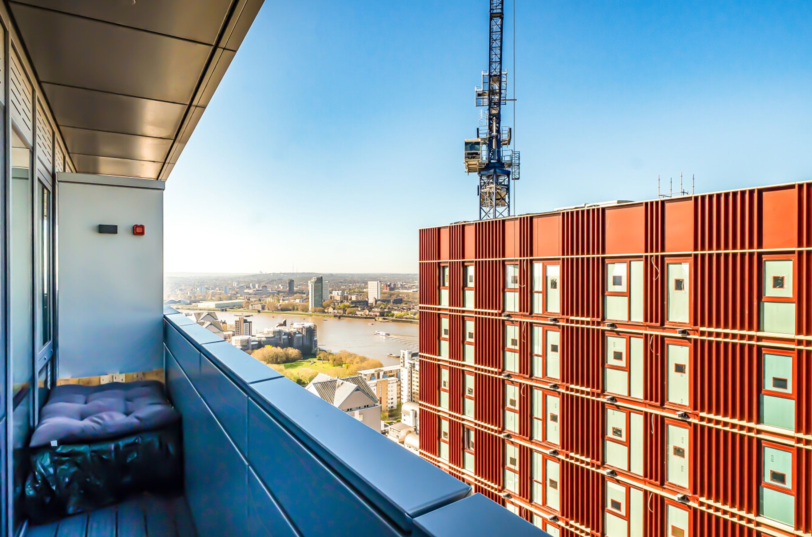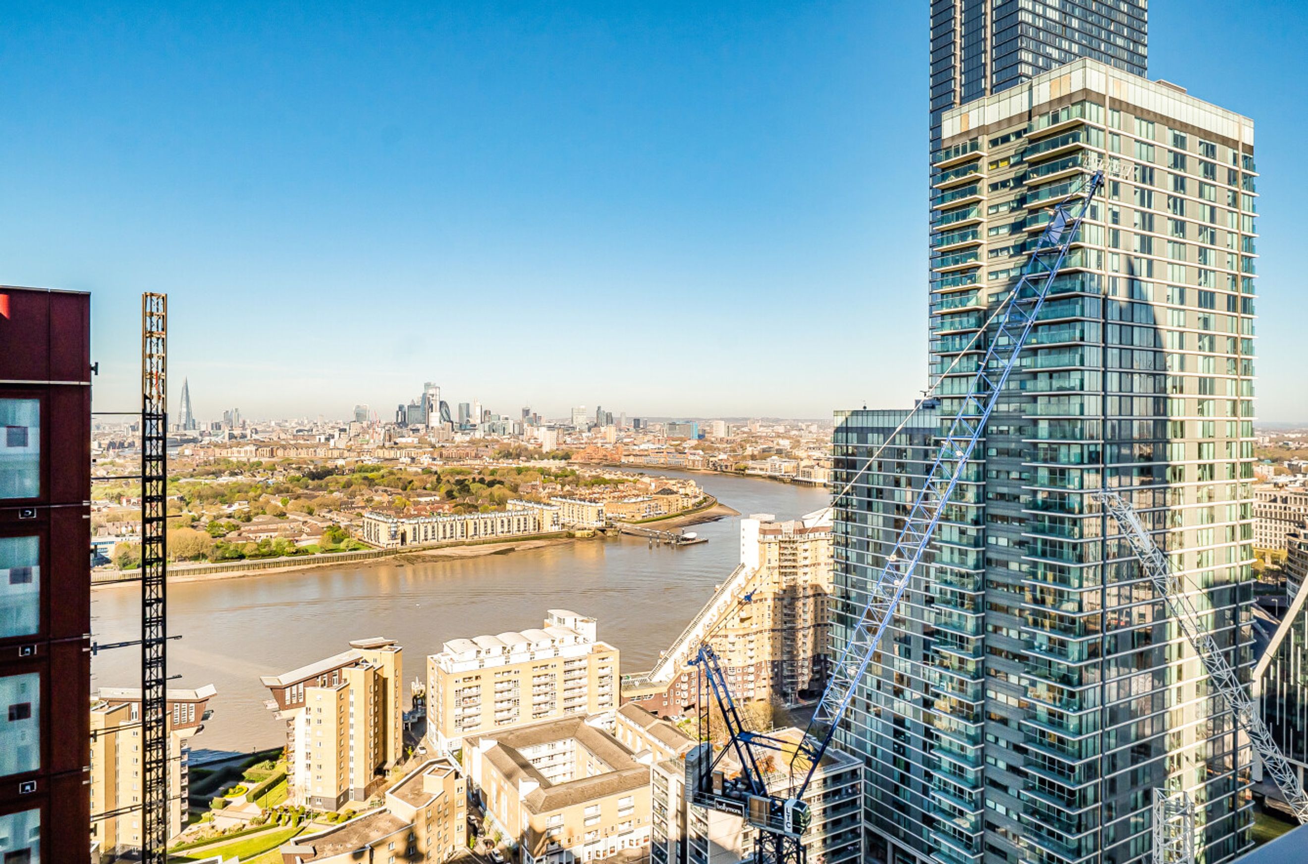 A great chance to buy a shared-ownership apartment just a short stroll from the centre of Canary Wharf. The property is on the twenty-eighth floor and has a twenty-two-foot reception room with stylish, open-plan kitchen featuring handle-less units and integrated appliances. A door leads out onto a west-facing balcony which offers a view of the meandering Thames plus The Shard, and the towers of the Square Mile, in the distance. There is a generously-sized bedroom and an attractive, fully-tiled bathroom. A pair of storage/utility cupboards have been provided and the energy-efficiency rating is very good, thanks to modern insulation standards, high performance glazing and a communal heating/hot water system. The development has a lounge/work space and roof terrace at thirtieth-floor level plus extensive cycle storage in the basement. Thames Clipper, DLR, Jubilee Line and Elizabeth Line connections are all within easy walking distance and there is an impressive range of shops, bars, restaurants and other amenities close by.