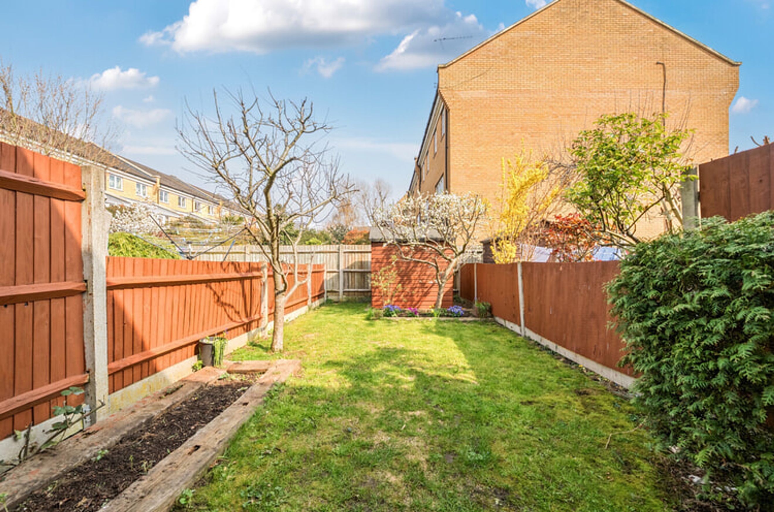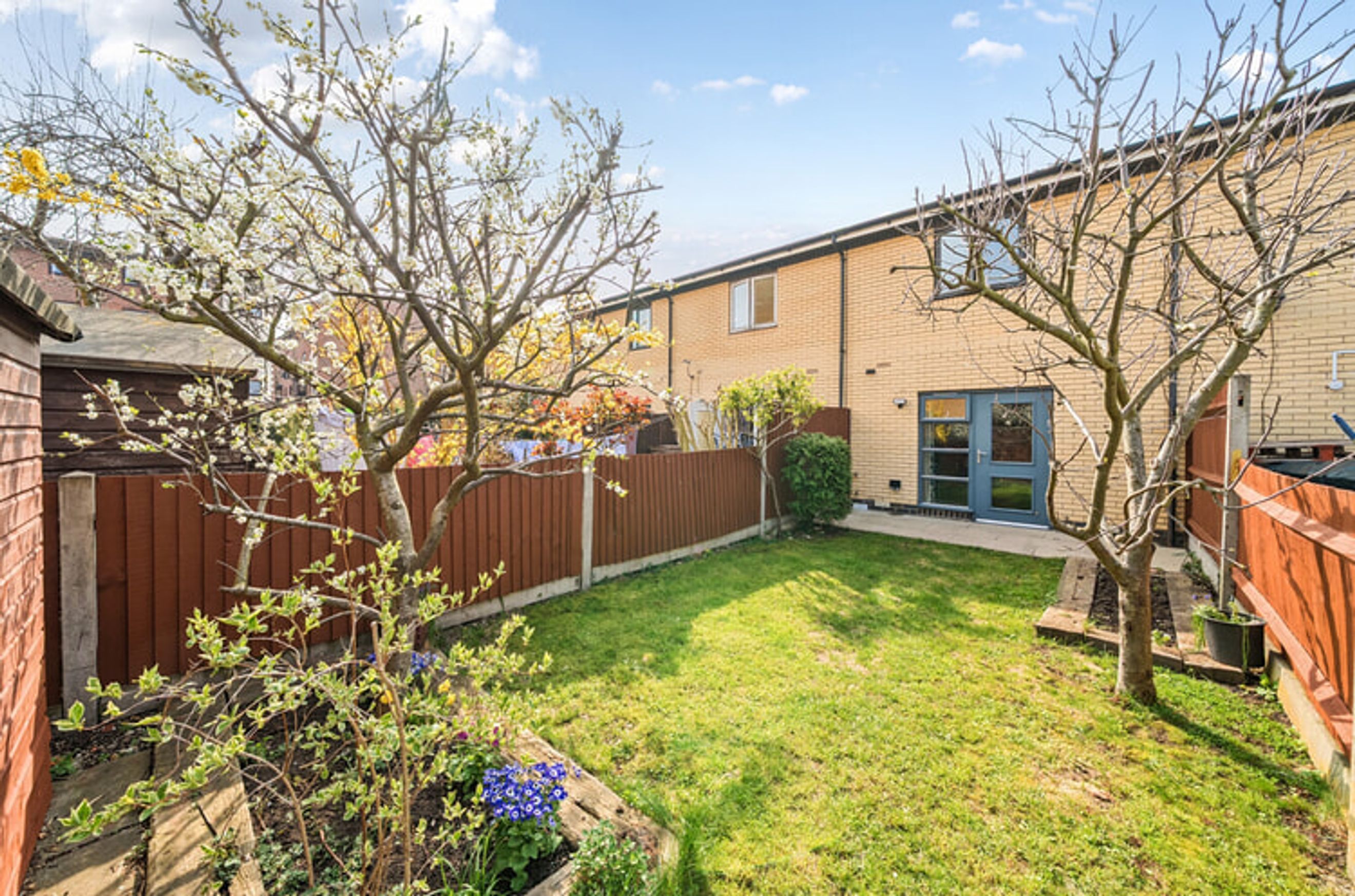 The property offers residents a spacious rear garden and a driveway at the front.