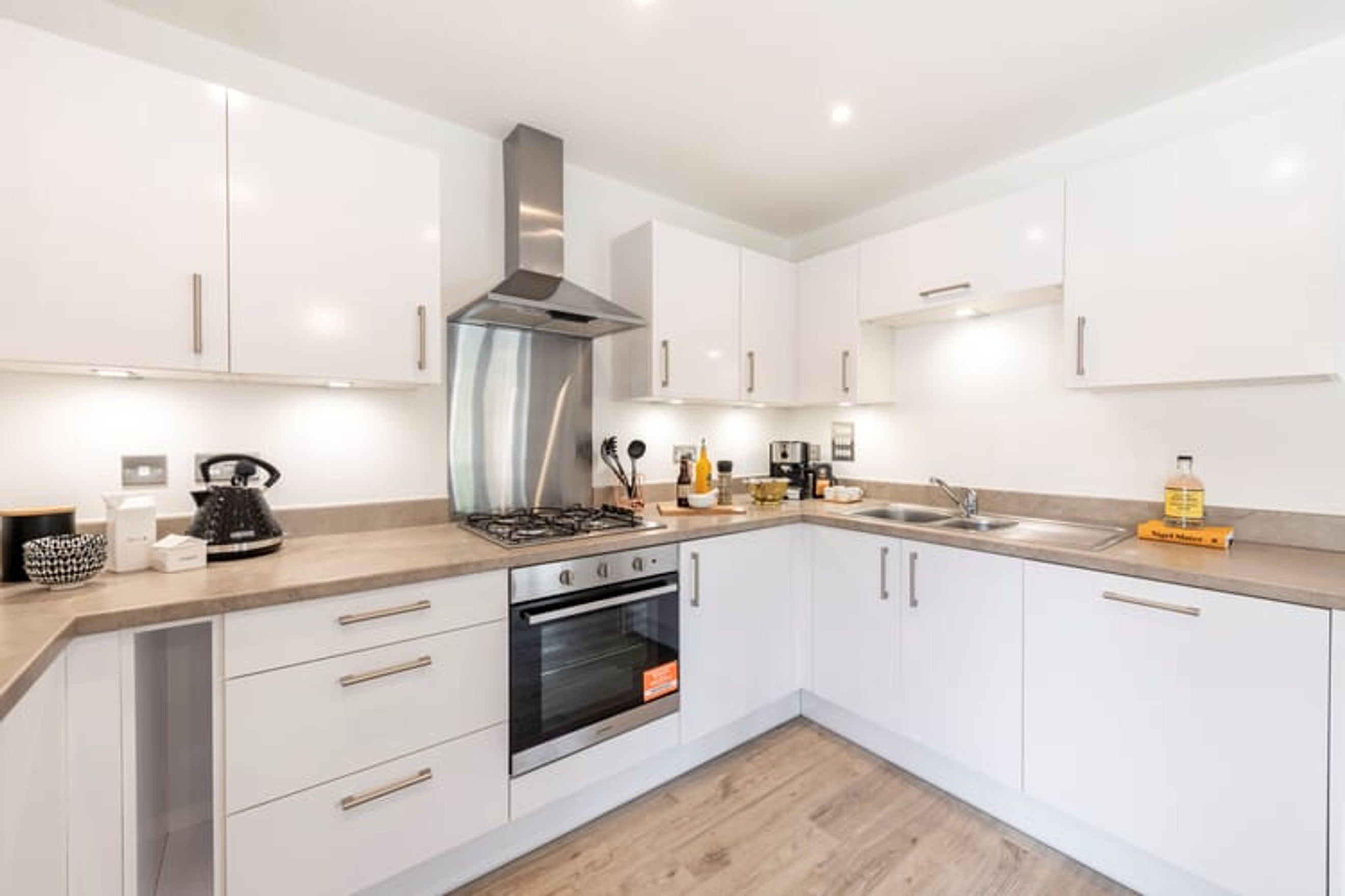 This bright and well proportioned two bedroom home is tailored for modern living, featuring a contemporary fitted kitchen with integrated oven, hob, extractor, fridge freezer, dishwasher and washing machine that flows into a generous living/dining space.