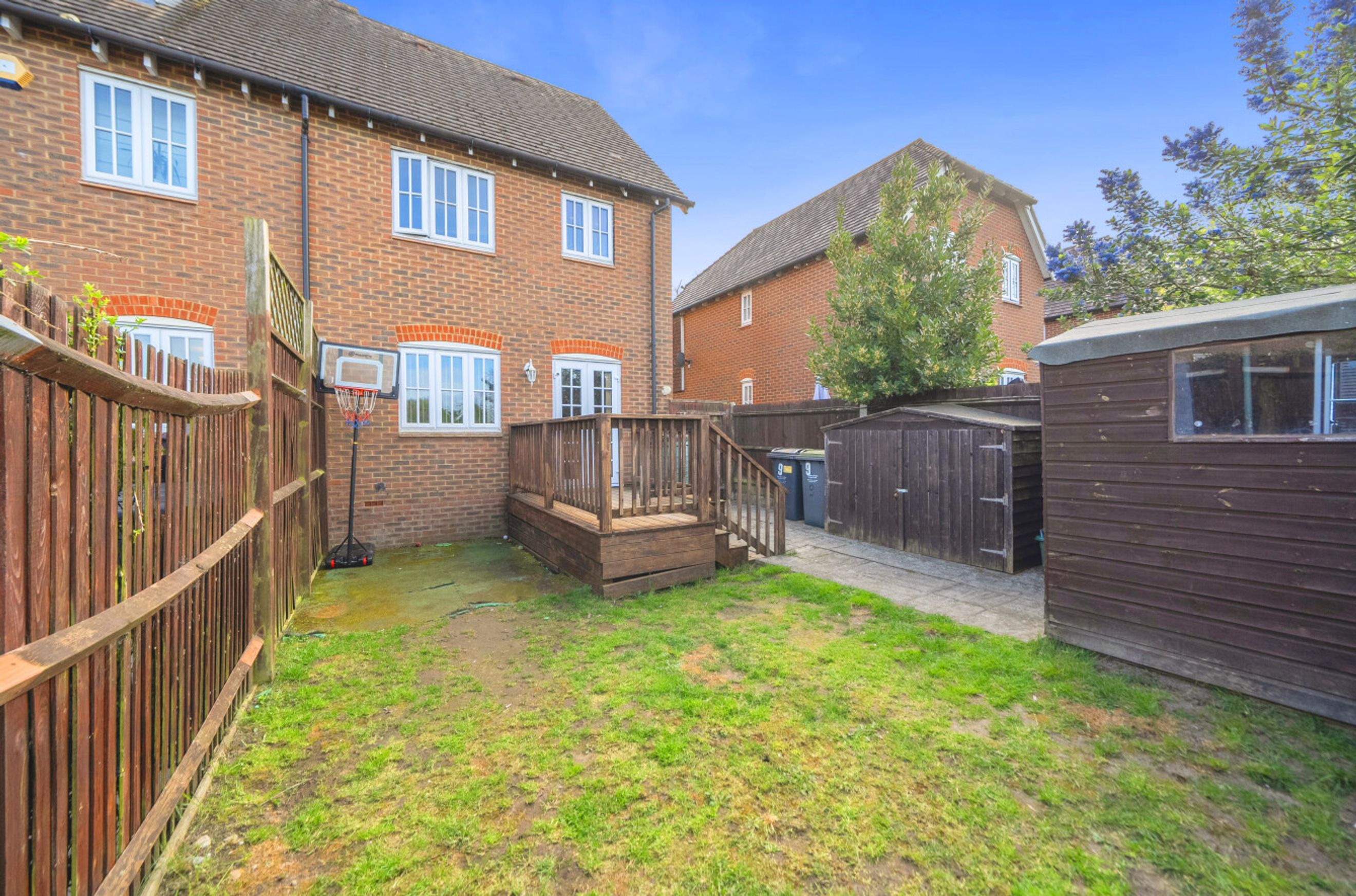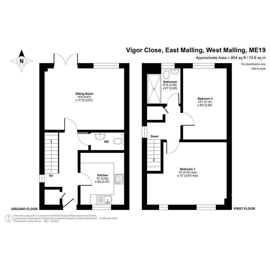 This well-presented property forms one end of a short, four-house terrace and has an attractive kitchen at the front, a central cloakroom/WC and a reception/dining room at the rear. Patio doors open onto a raised platform with three steps then leading down to the garden, which can also be accessed via a side gate and includes a pair of timber outbuildings. On the first floor of the house is a spacious main bedroom plus a second, good-sized, double bedroom and a naturally-lit shower room with marble-style tiles. Modern insulation standards, double glazing and gas central heating make for a good energy-efficiency rating. The house comes with a two-car driveway and the local roads provide easy access to the M20 as well as many of the regions other major routes. Alternatively, East Malling Station is just a short walk away for rail services between Ashford and London Victoria. The local primary and secondary schools are both Ofsted-rated 'Good' and there are several other well-thought-of schools in the surrounding area.