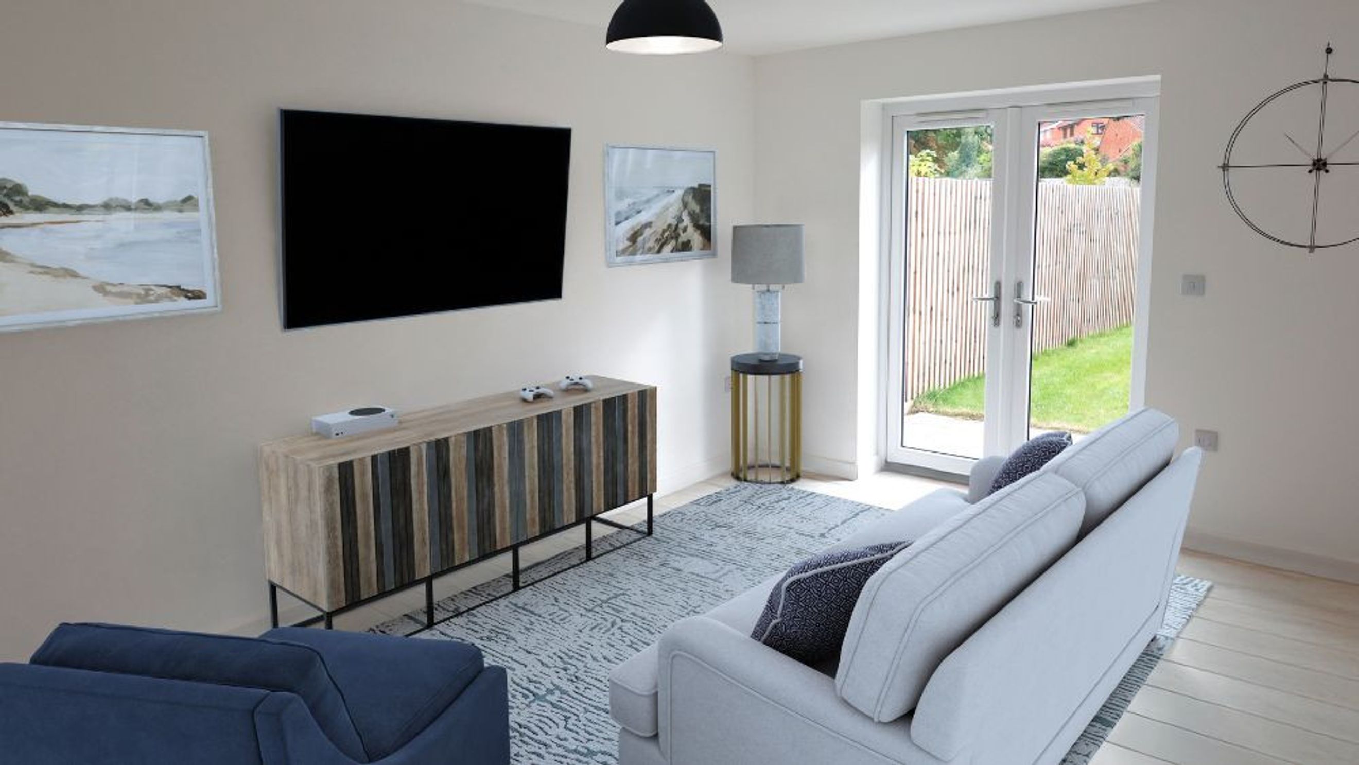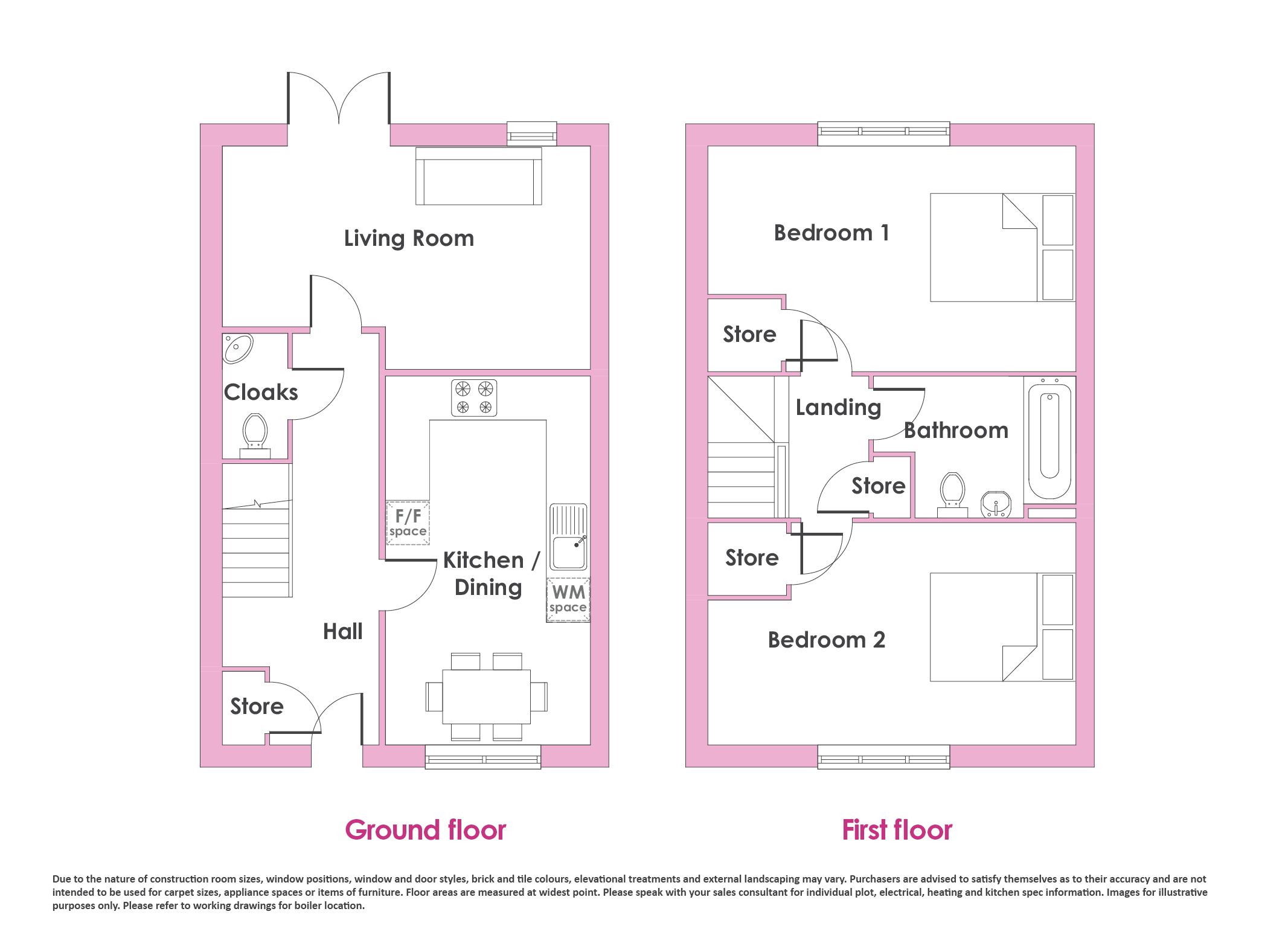 Upstairs, features two double bedrooms, both with additional storage and a stylish family bathroom.