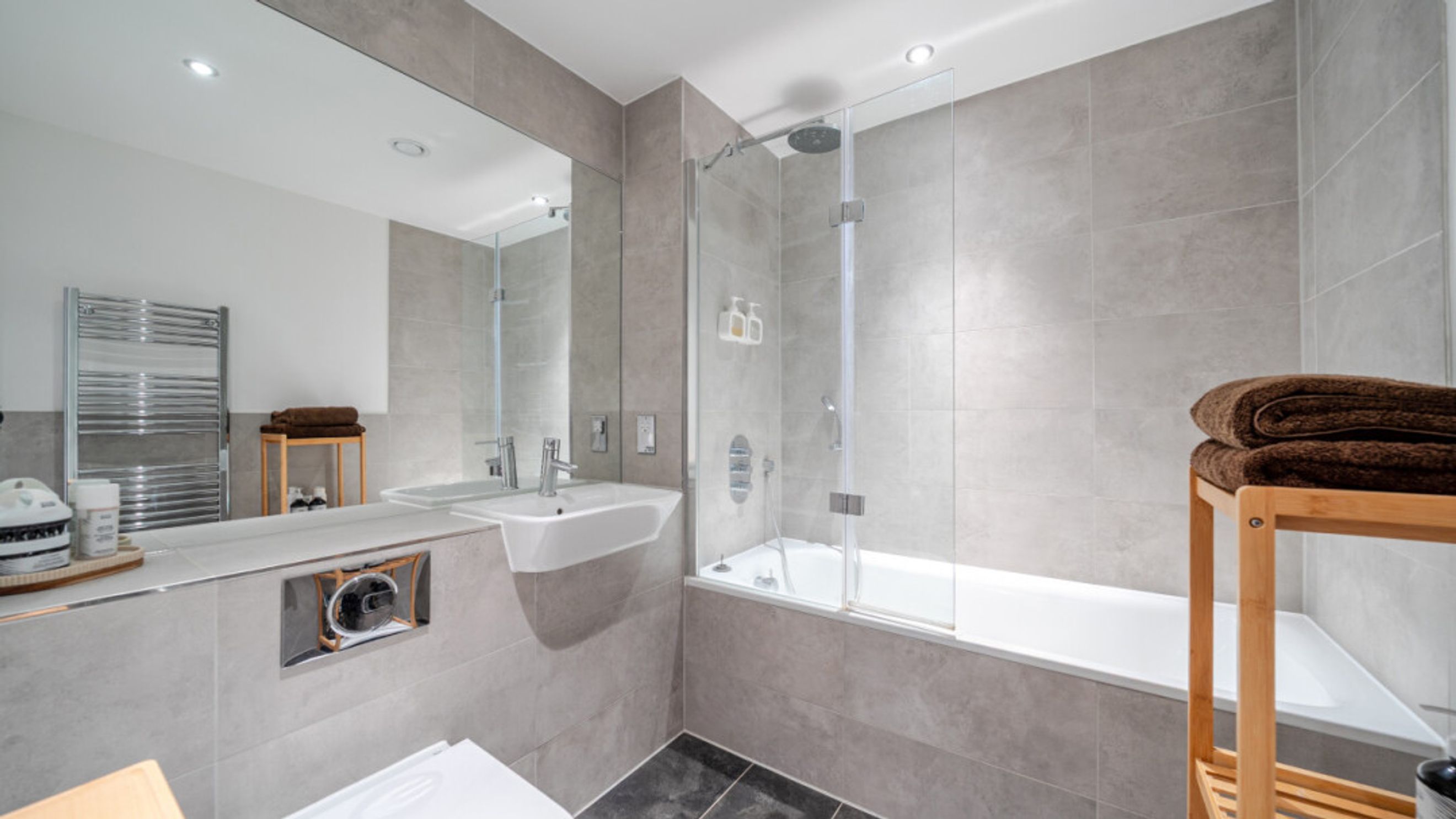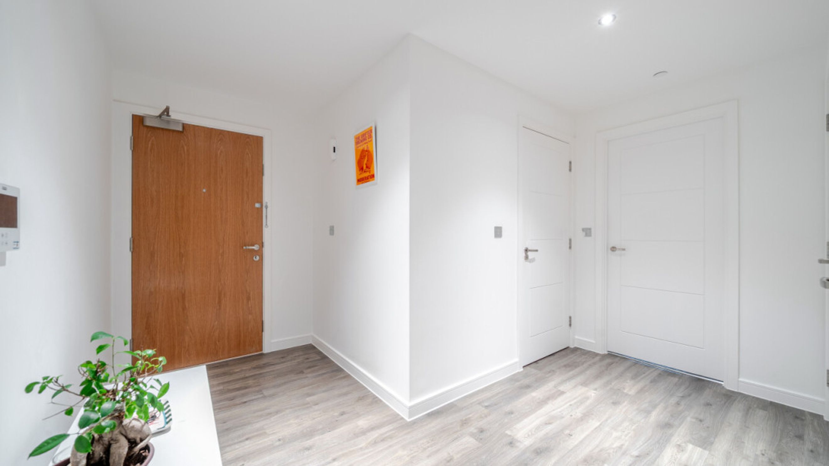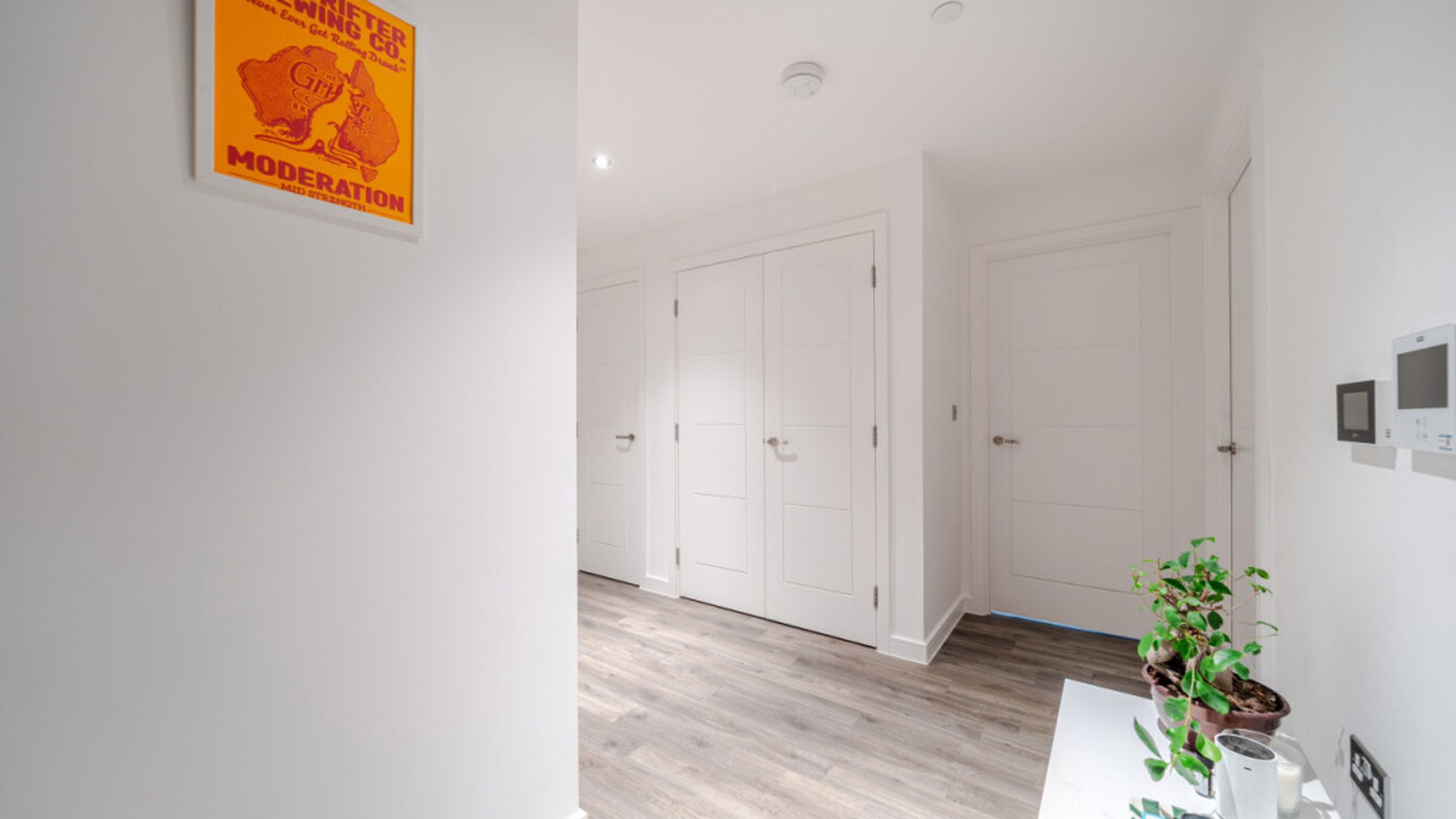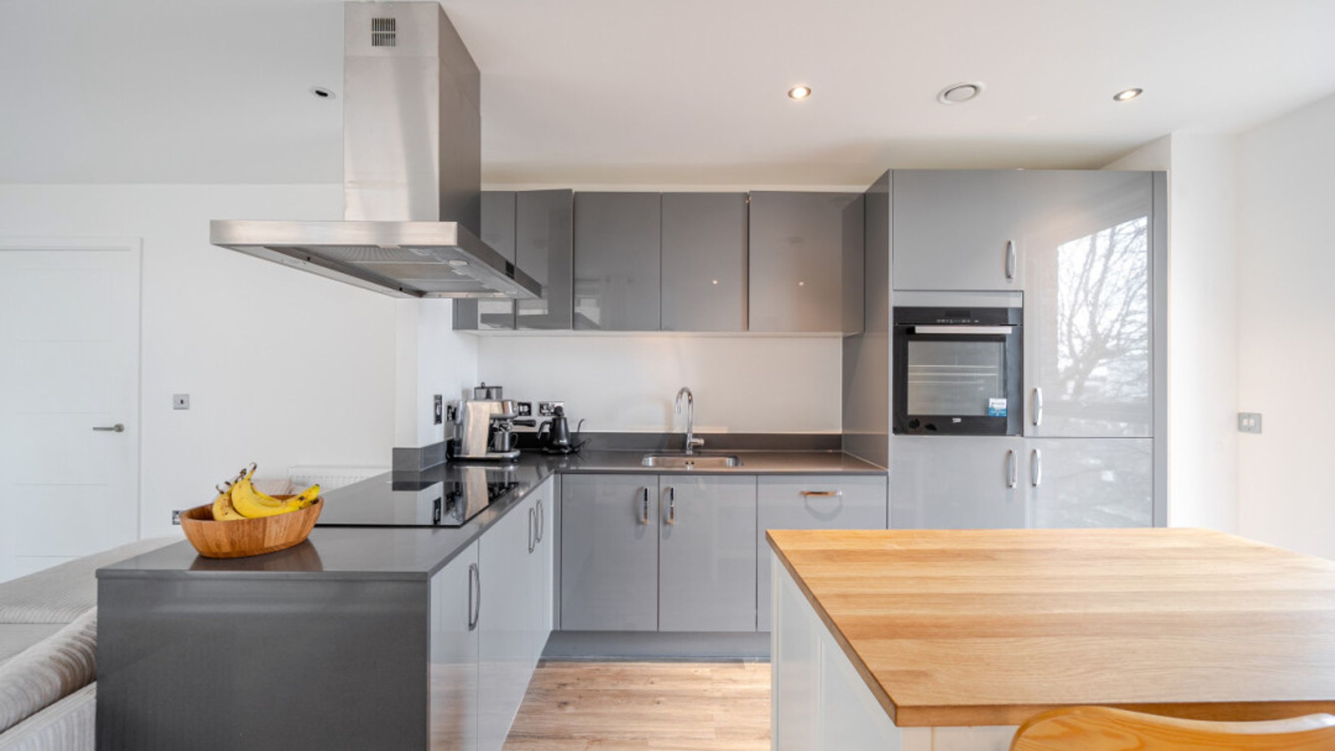 Enter this apartment via a bright and spacious hallway with storage, including a utility cupboard. A dual aspect open plan reception area leads onto a balcony that accommodates a large sofa. The modern kitchen is fitted with high gloss units and includes fully integrated appliances. There are two generous double bedrooms, each with in-built storage. The master includes an en-suite shower room and a contemporary bathroom serves the second bedroom.