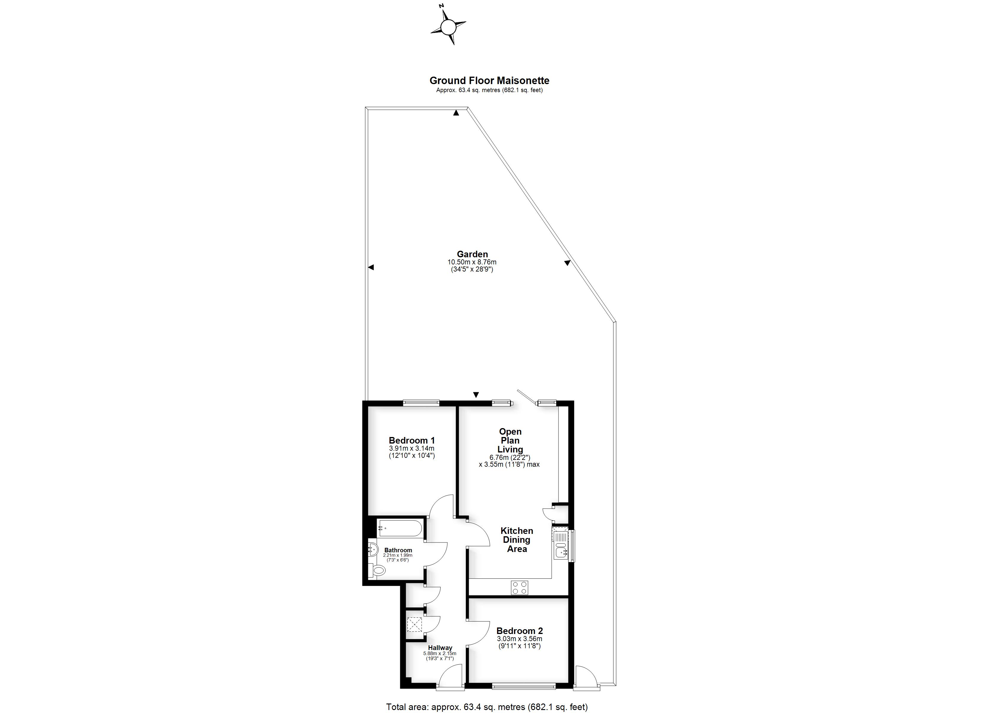 A fantastic 2‑bedroom ground floor apartment with a private garden in the popular Beazley Court development. Available through Shared Ownership from £157,500 for a 50% share of £315,000.