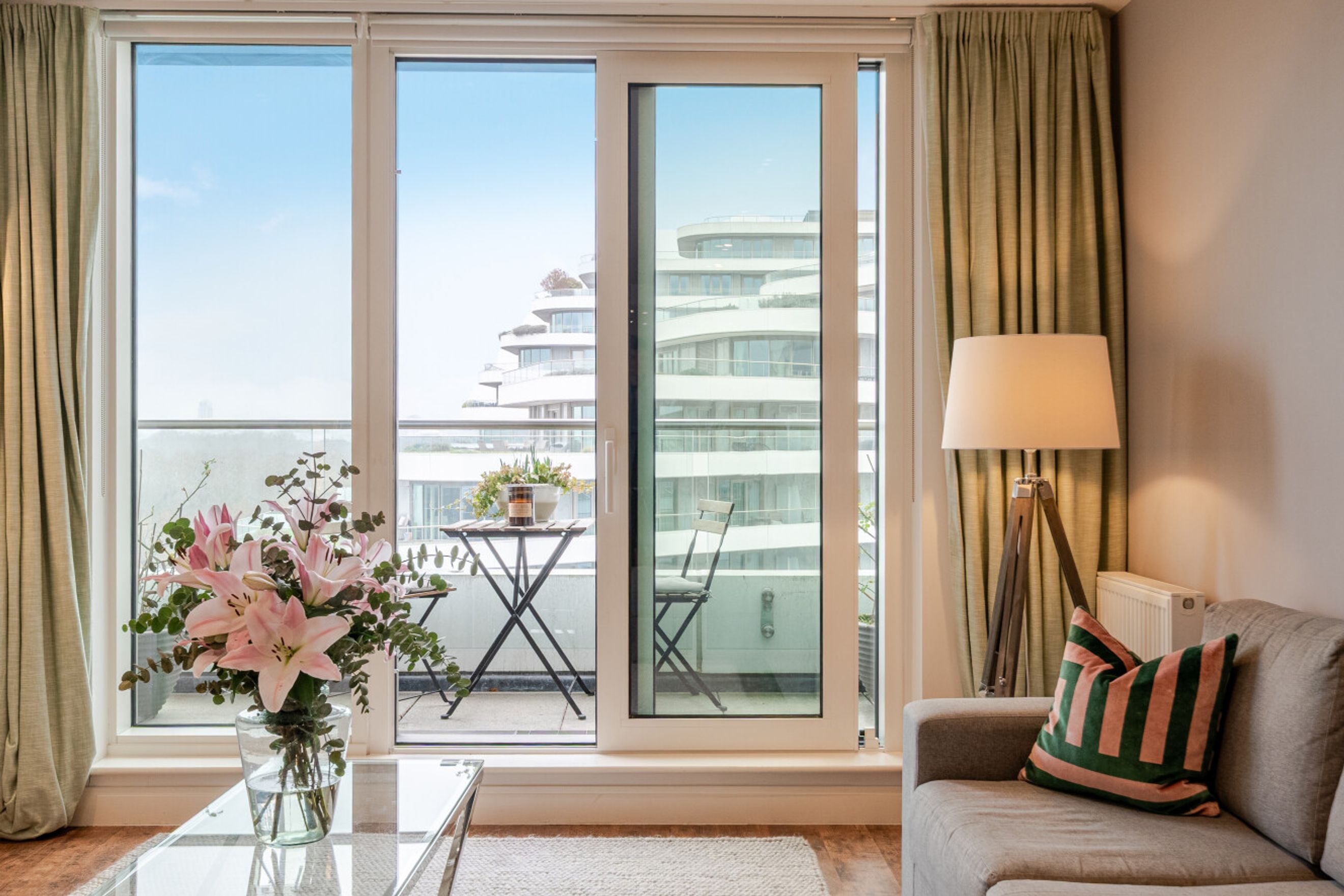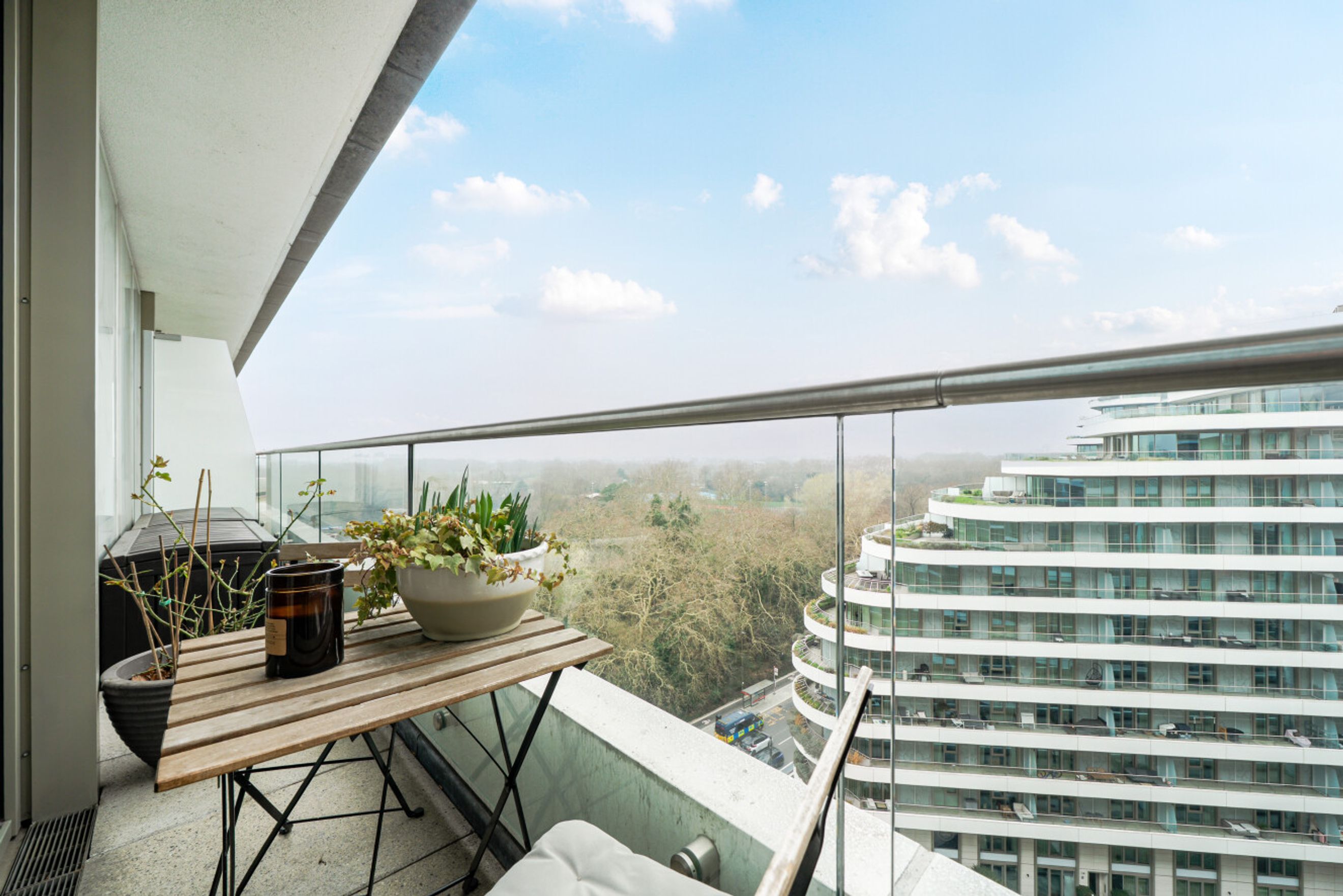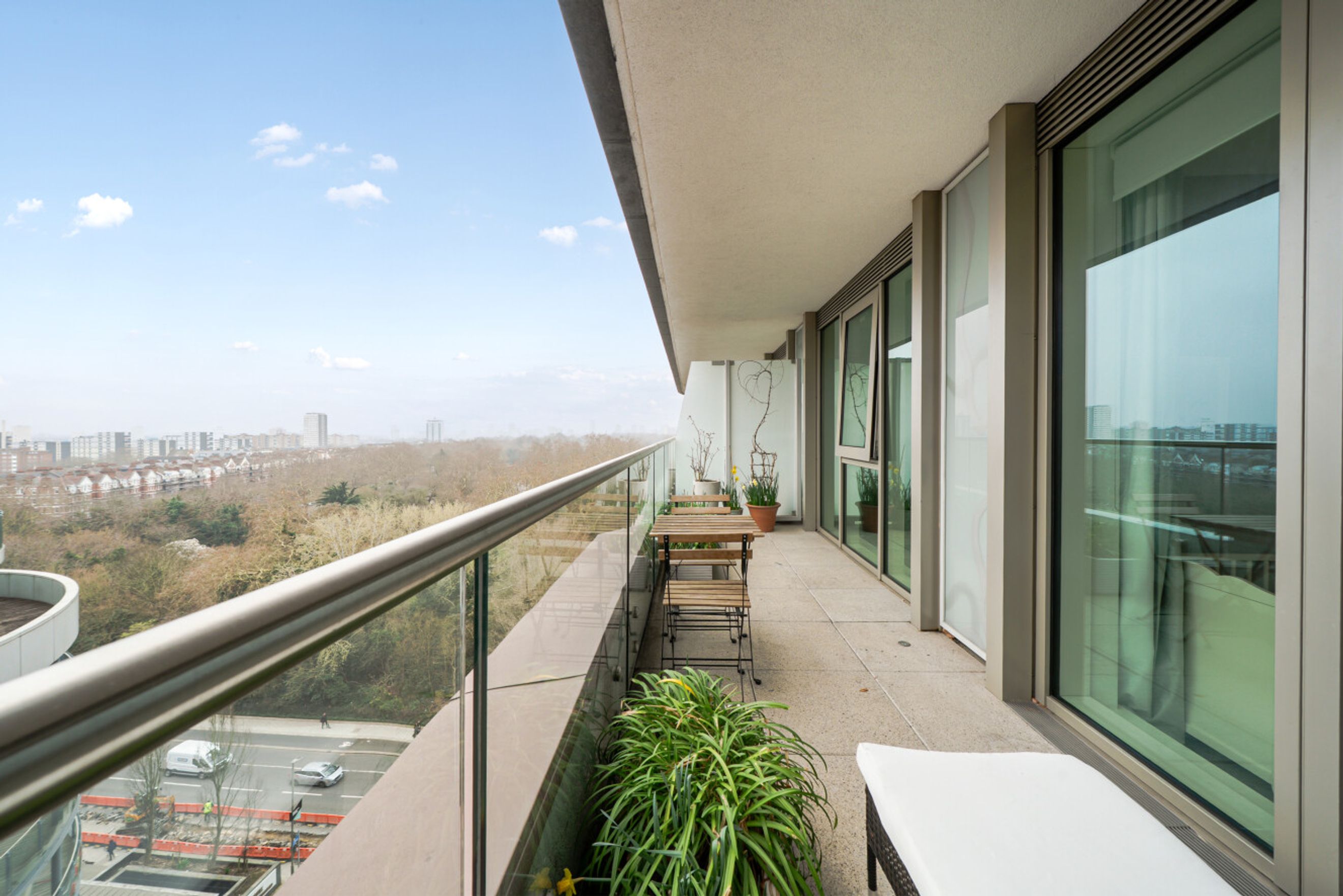 This tenth‑floor home features 2 well‑proportioned bedrooms, an open‑plan living and dining area, and a modern kitchen with integrated appliances. Floor‑to‑ceiling windows flood the apartment with natural light and provide uninterrupted views across Battersea Park and the River Thames. The property also benefits from two private balconies and secure underground bike storage.