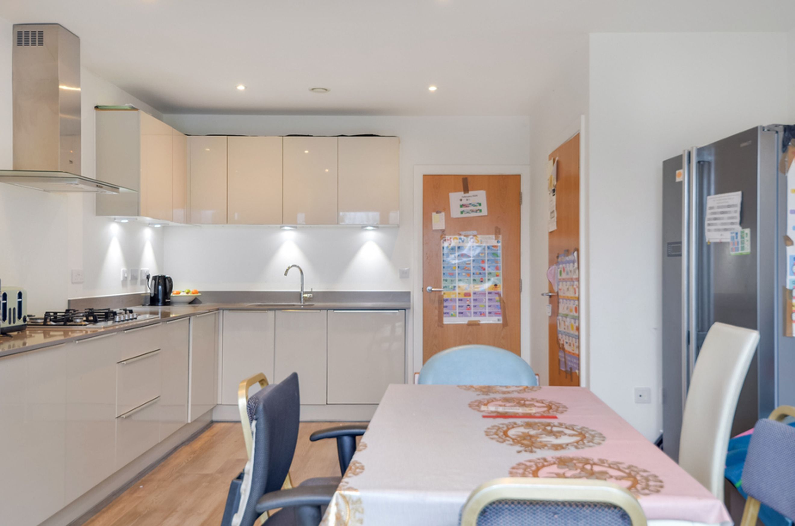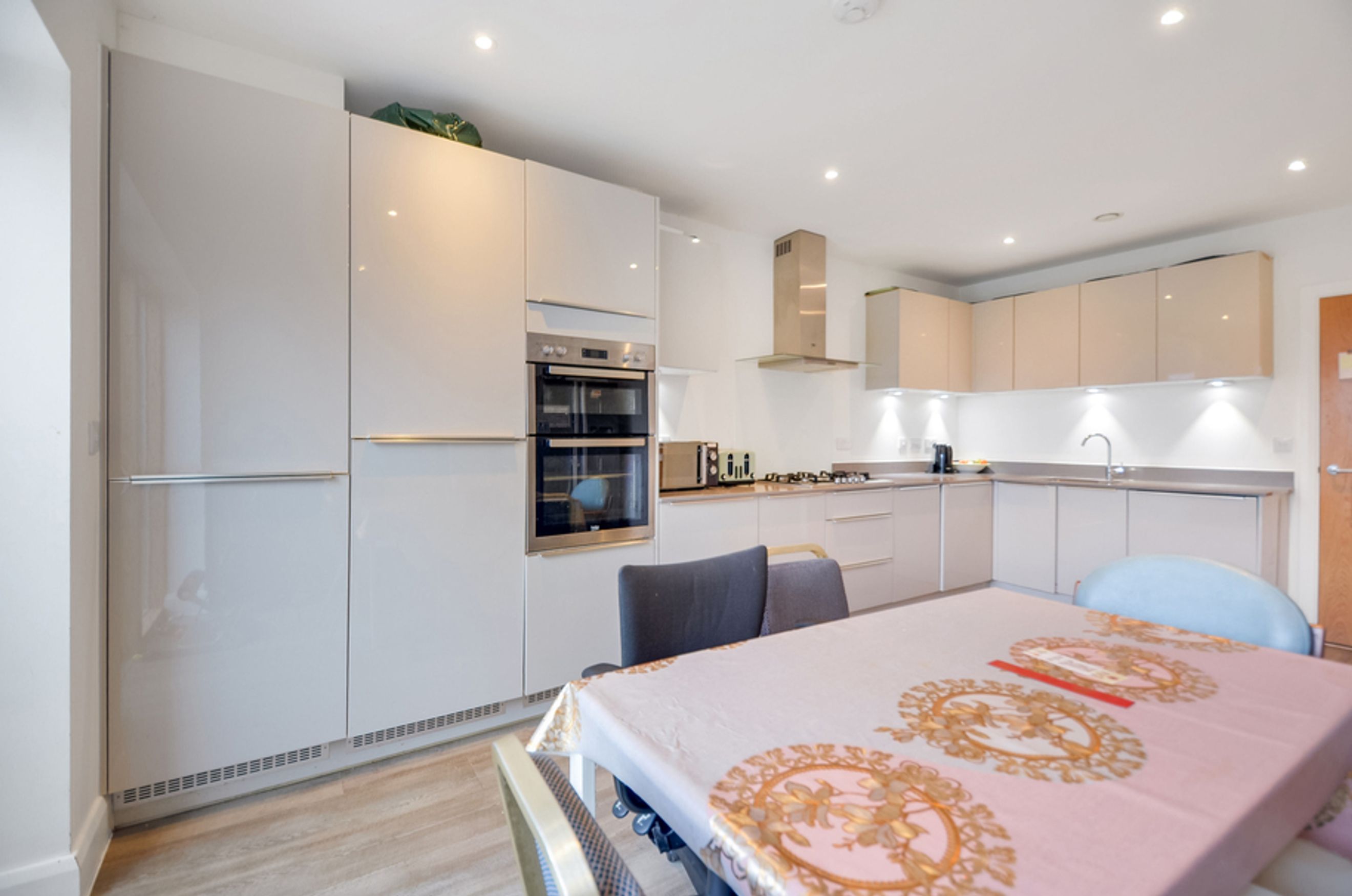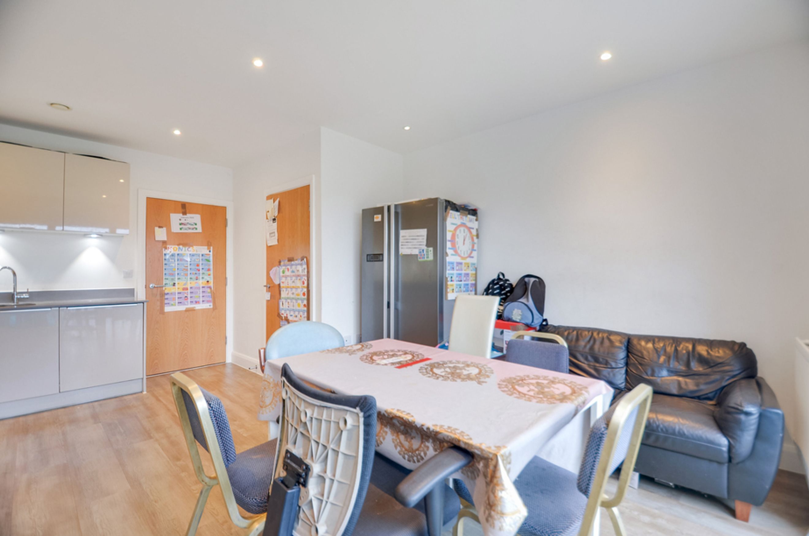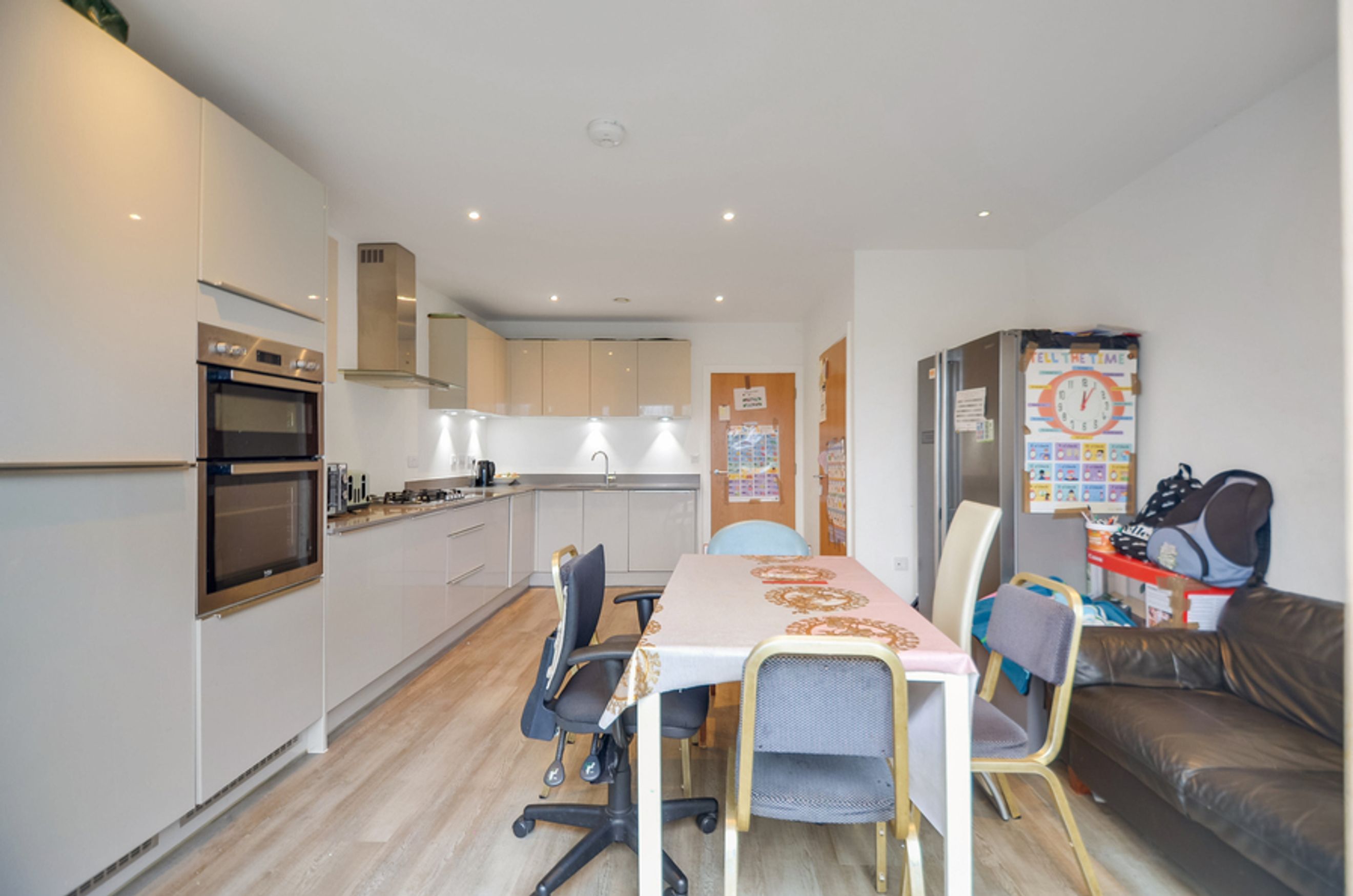 This spacious property features 3 well‑sized bedrooms, 2 bathrooms, and an open‑plan living area enhanced by floor‑to‑ceiling windows that fill the space with natural light. The contemporary kitchen comes complete with integrated appliances, while the home also benefits from central heating, secure bike storage, a communal terrace, and private allocated parking, offering both comfort and convenience.