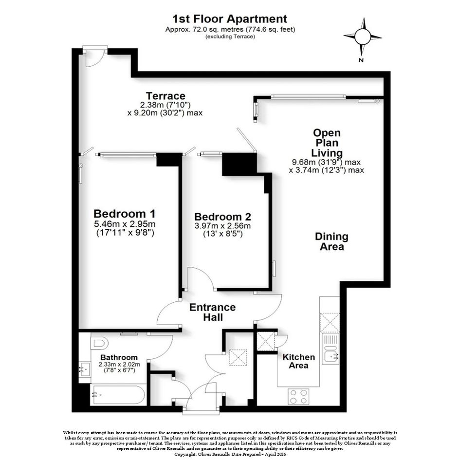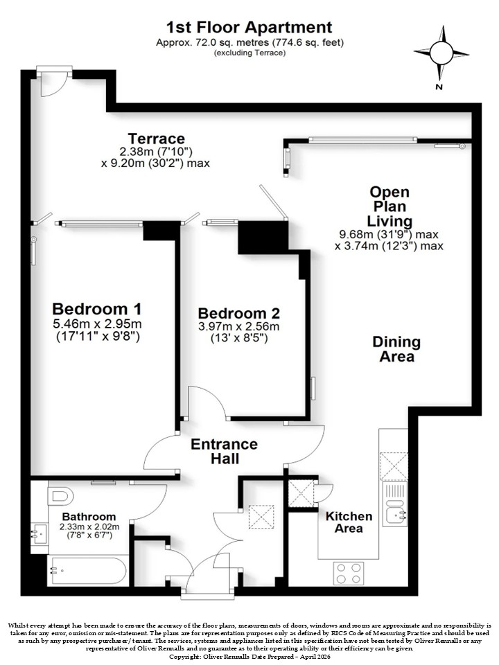 This home features 2 well‑sized bedrooms, a contemporary bathroom, and an open‑plan kitchen with integrated appliances. Floor‑to‑ceiling windows provide plenty of natural light and city views, while central heating ensures year‑round comfort. The apartment also benefits from a private terrace, access to a communal terrace, and secure bike storage.