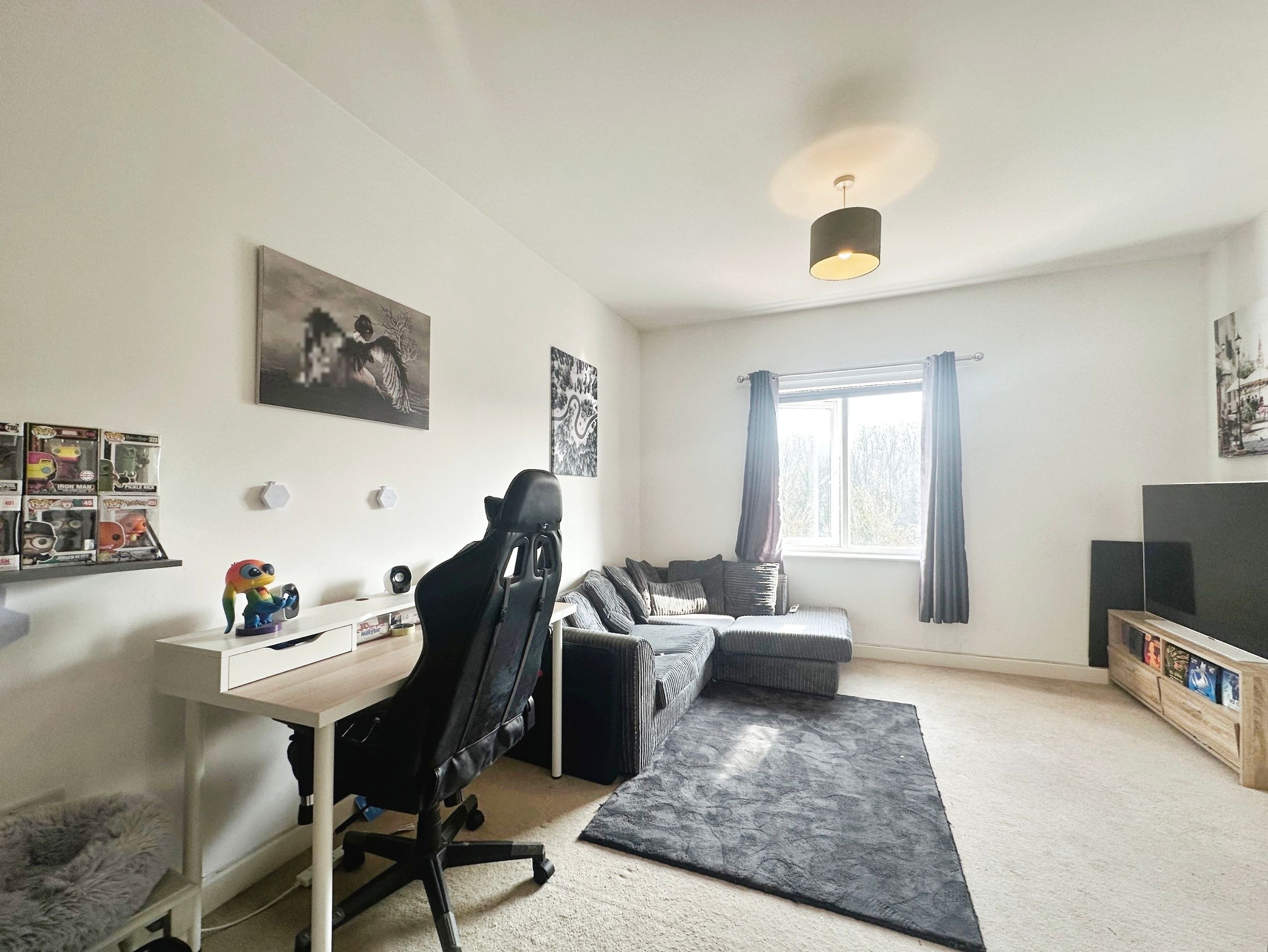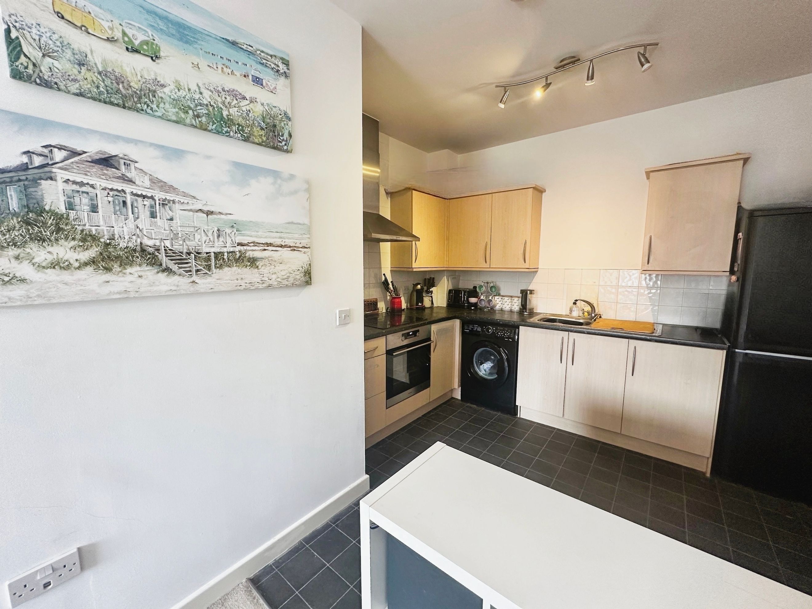 The living area is configured to provide a versatile space for both relaxing and entertaining, flowing seamlessly into a contemporary kitchen area that serves as the heart of the home. This open, sociable layout enhances the sense of space while maintaining clearly defined zones for day-to-day living, making it equally suited to quiet evenings or hosting guests.