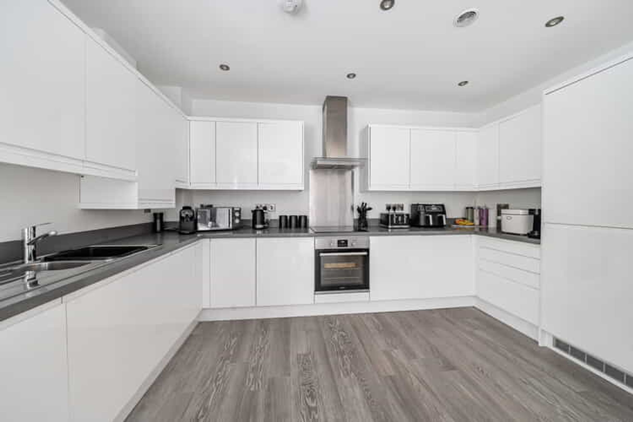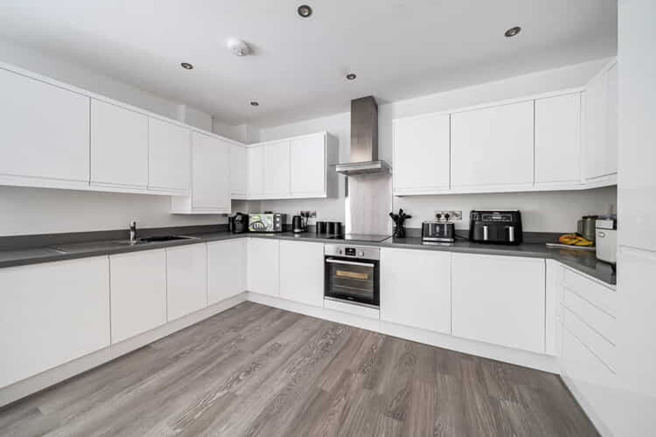 The town centre is approximately 5 minutes by car or 20 minutes on foot, offering access to a variety of supermarkets, independent shops, gyms, and healthcare facilities.