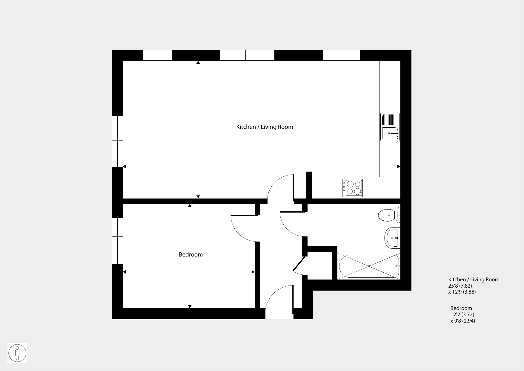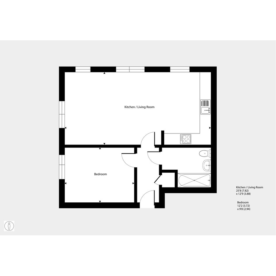 Featuring an open-plan living / kitchen area. The kitchen has a fitted oven, hob and hood. The bedroom is a spacious double, with floor to ceiling window. The bathroom has a modern, white suite.