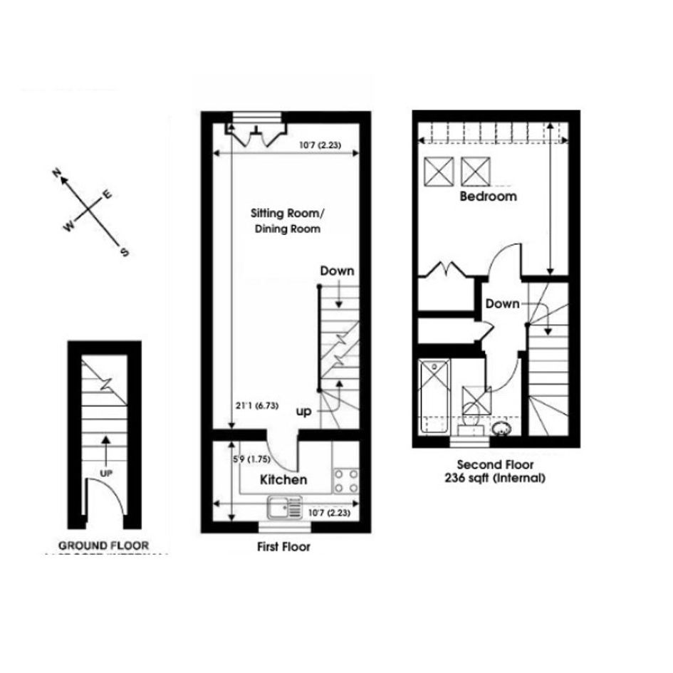 The second floor features a generous double bedroom complete with a built‑in wardrobe, along with a well‑appointed bathroom fitted with a modern white suite. The layout makes excellent use of the space and is well suited to a single professional or couple.
