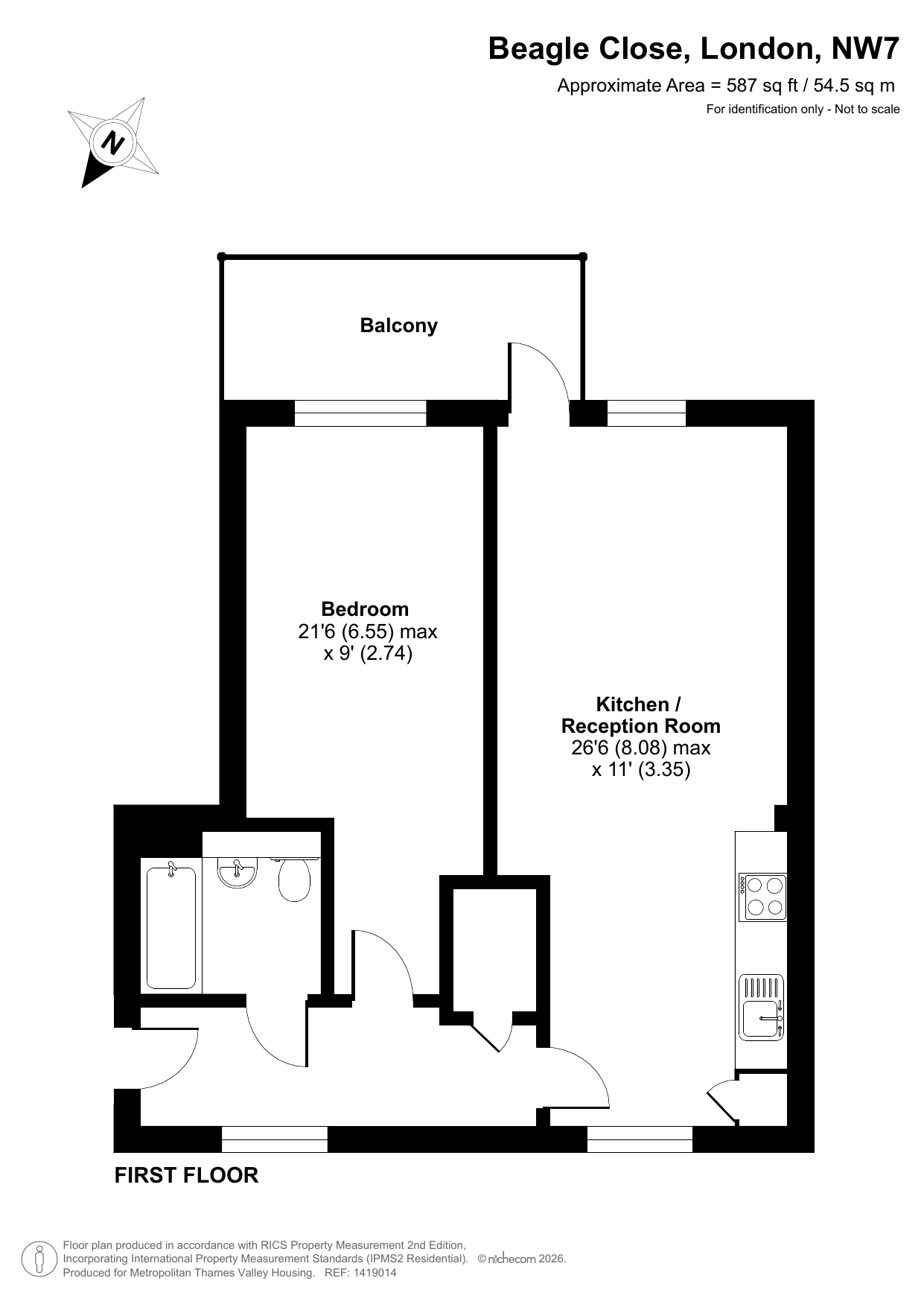 The property is situated on the first floor and comprises an entrance hallway leading to the an open-plan reception room and modern kitchen, a good-sized bedroom and a modern bathroom. Perfect for singles or couples.