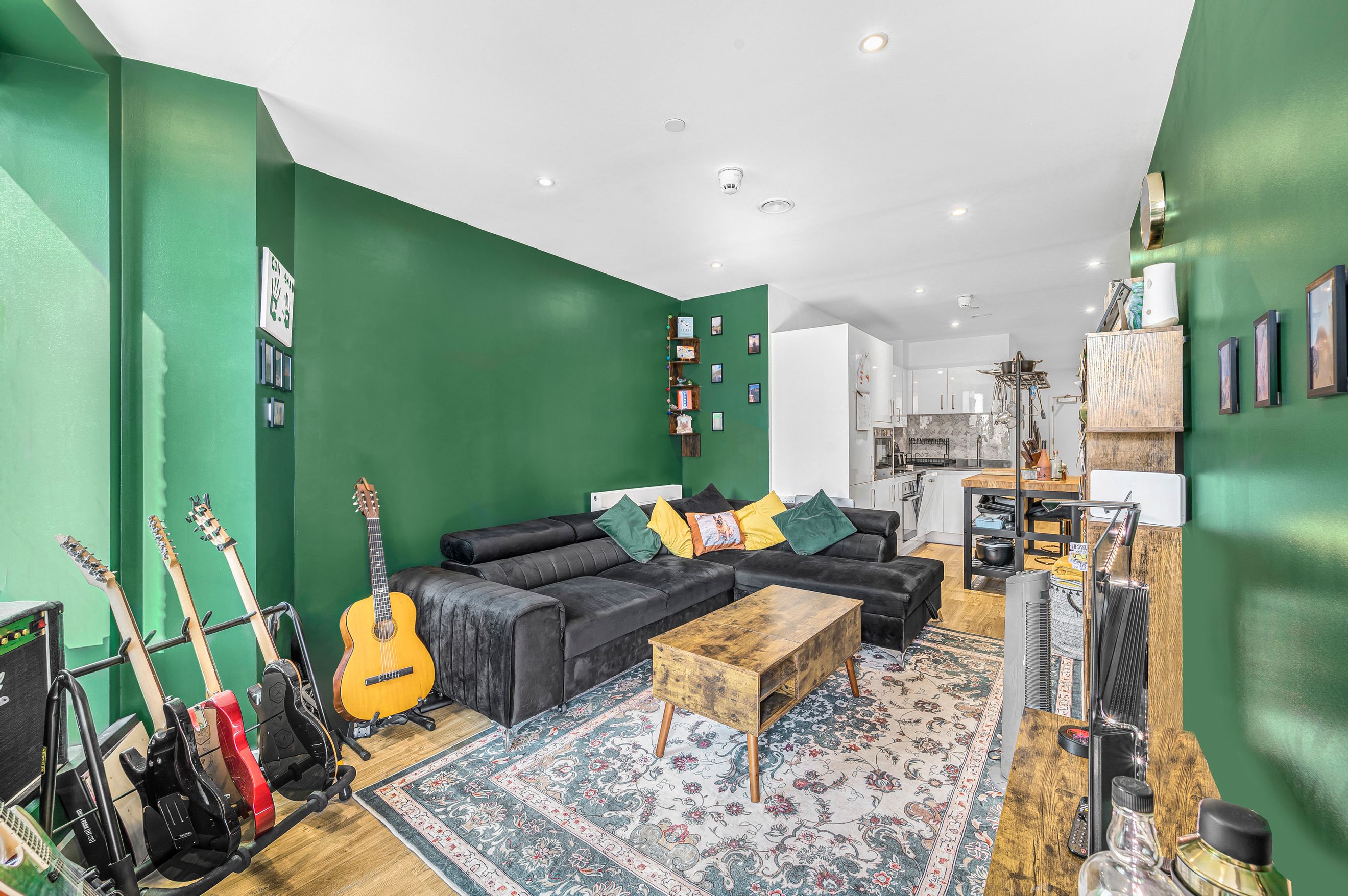 Set within a distinctive modern development on Salter Street, this stunning third-floor apartment offers a bright and thoughtfully arranged living space ideal for both relaxing and entertaining. The property benefits from a contemporary layout, with a spacious reception room featuring an attractive angular design that enhances natural light and creates a sense of openness.