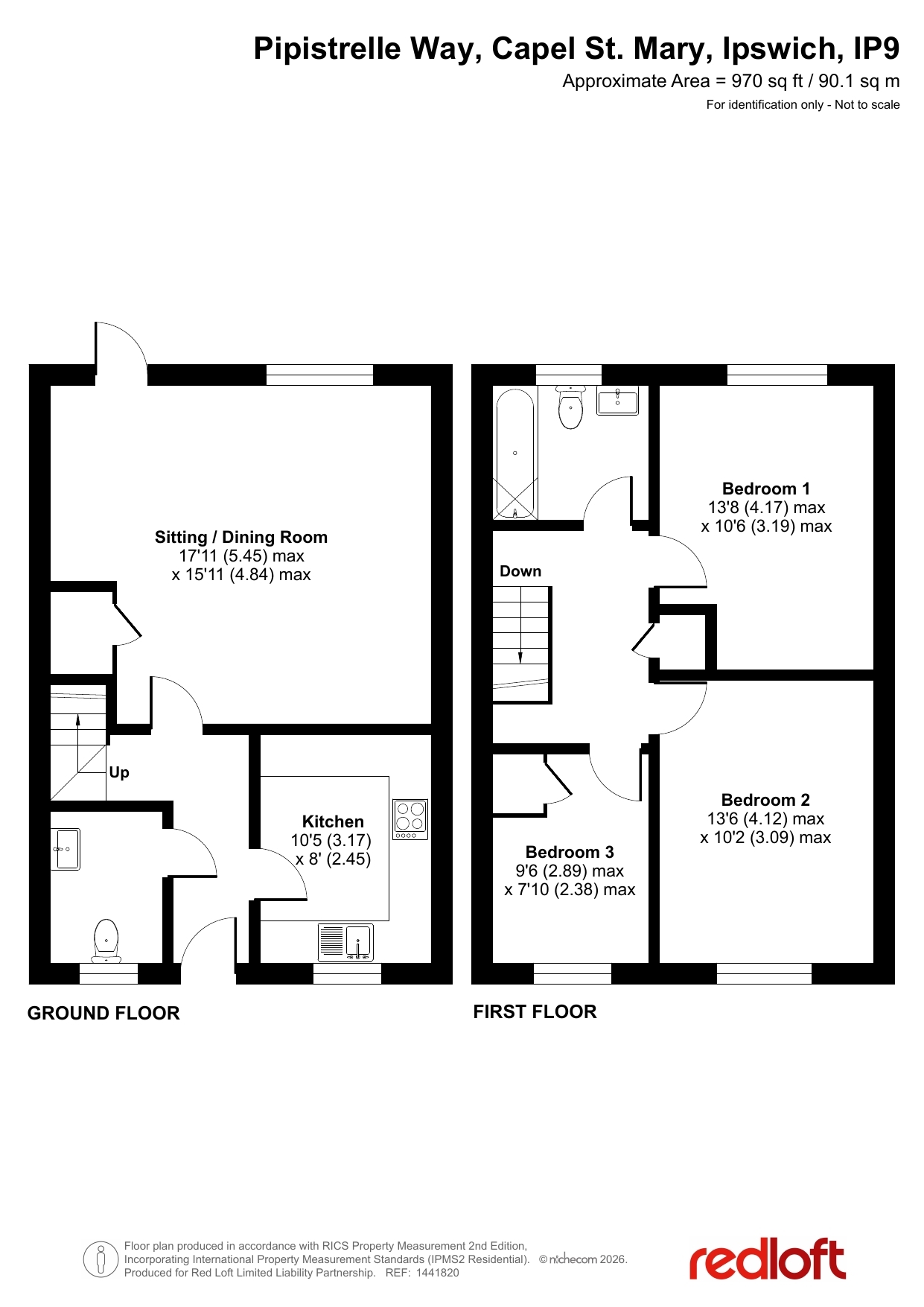 Upstairs, the property offers three well-sized bedrooms, including two comfortable double rooms and a third bedroom that would work perfectly as a child's room, guest room or home office. The first floor also benefits from a family bathroom and central landing providing access to all rooms.