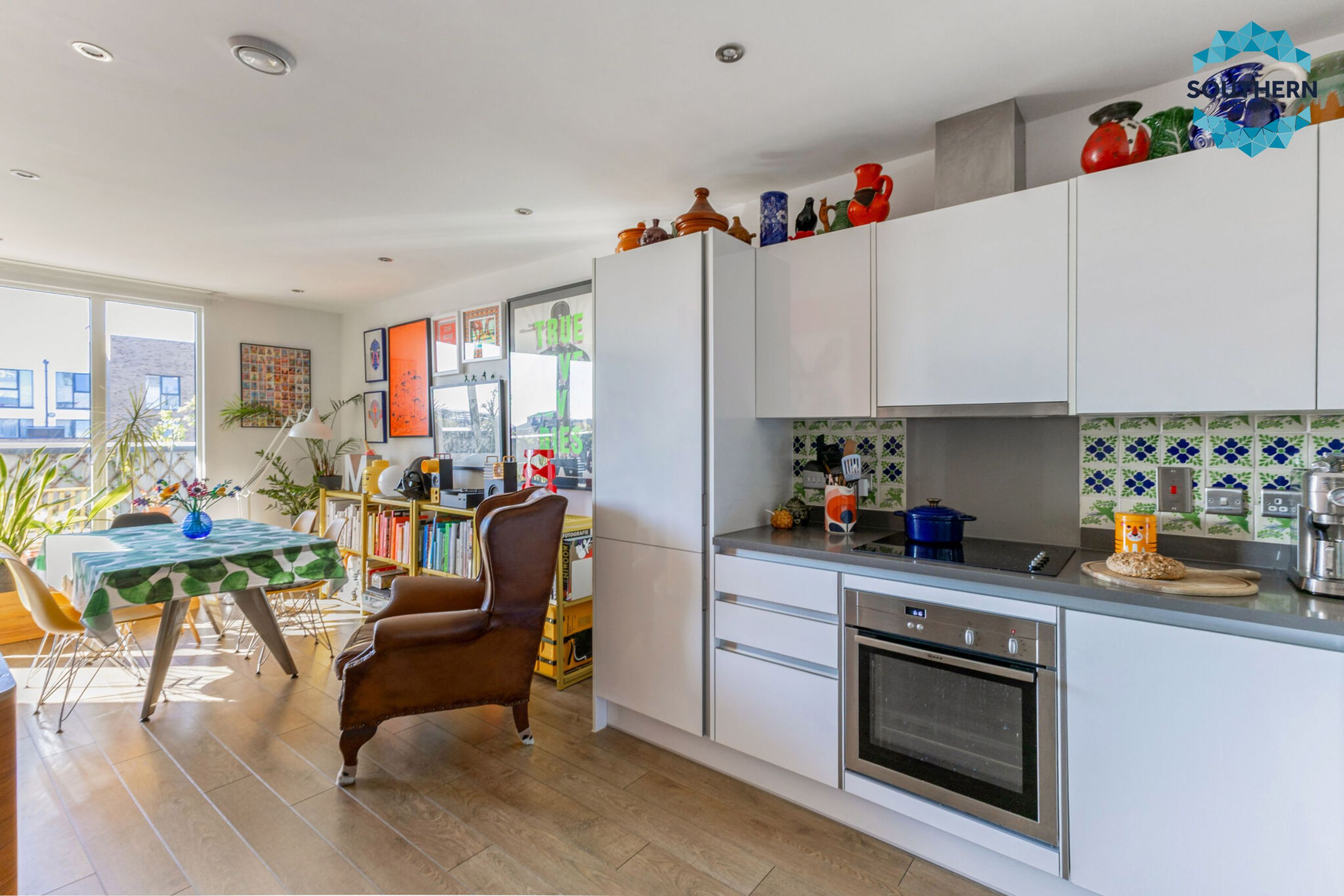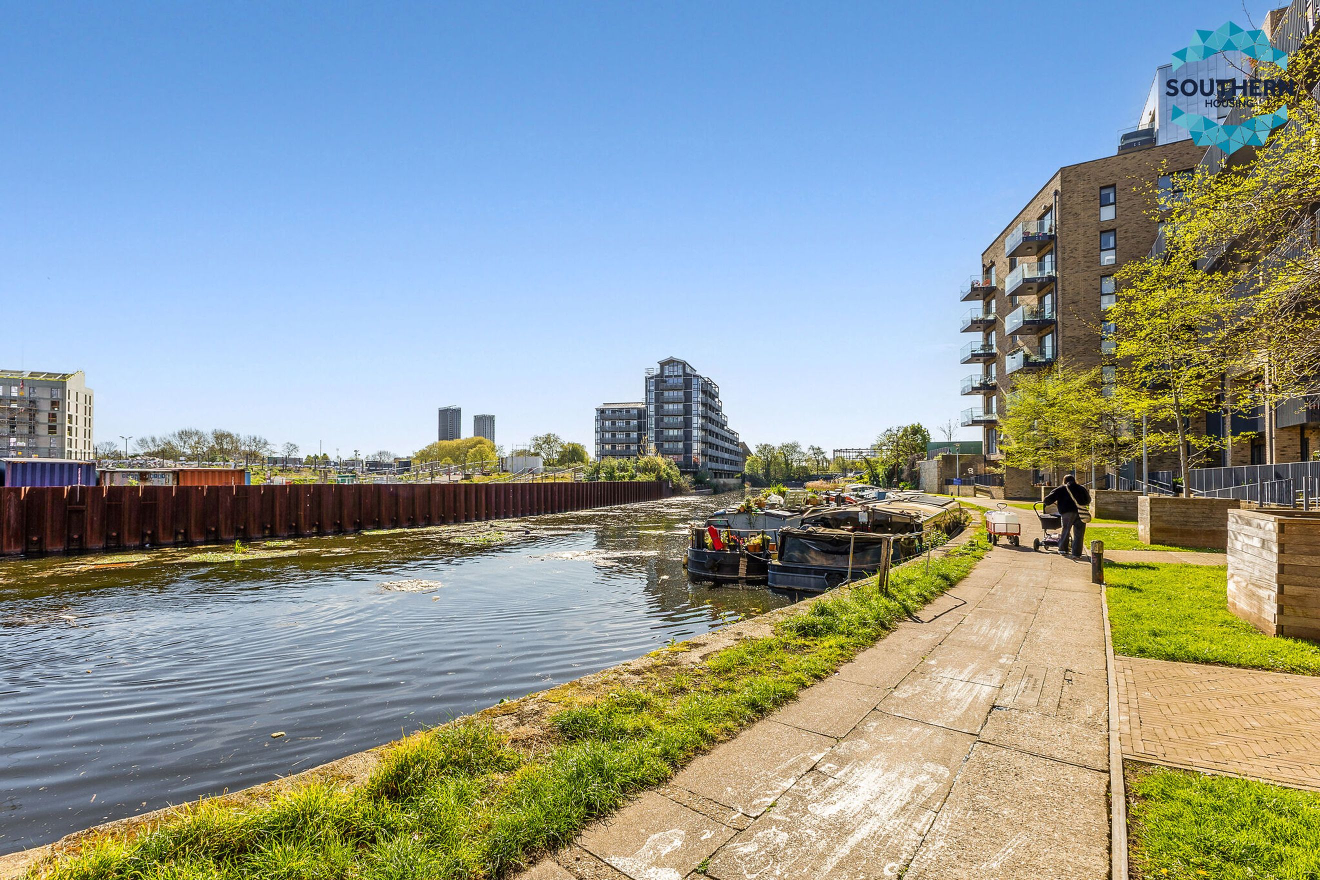 A unique feature of the property is its proximity to Three Mills Studios, a historic and visually striking landmark that can be seen from the living room terrace and is just a 2-minute walk away.