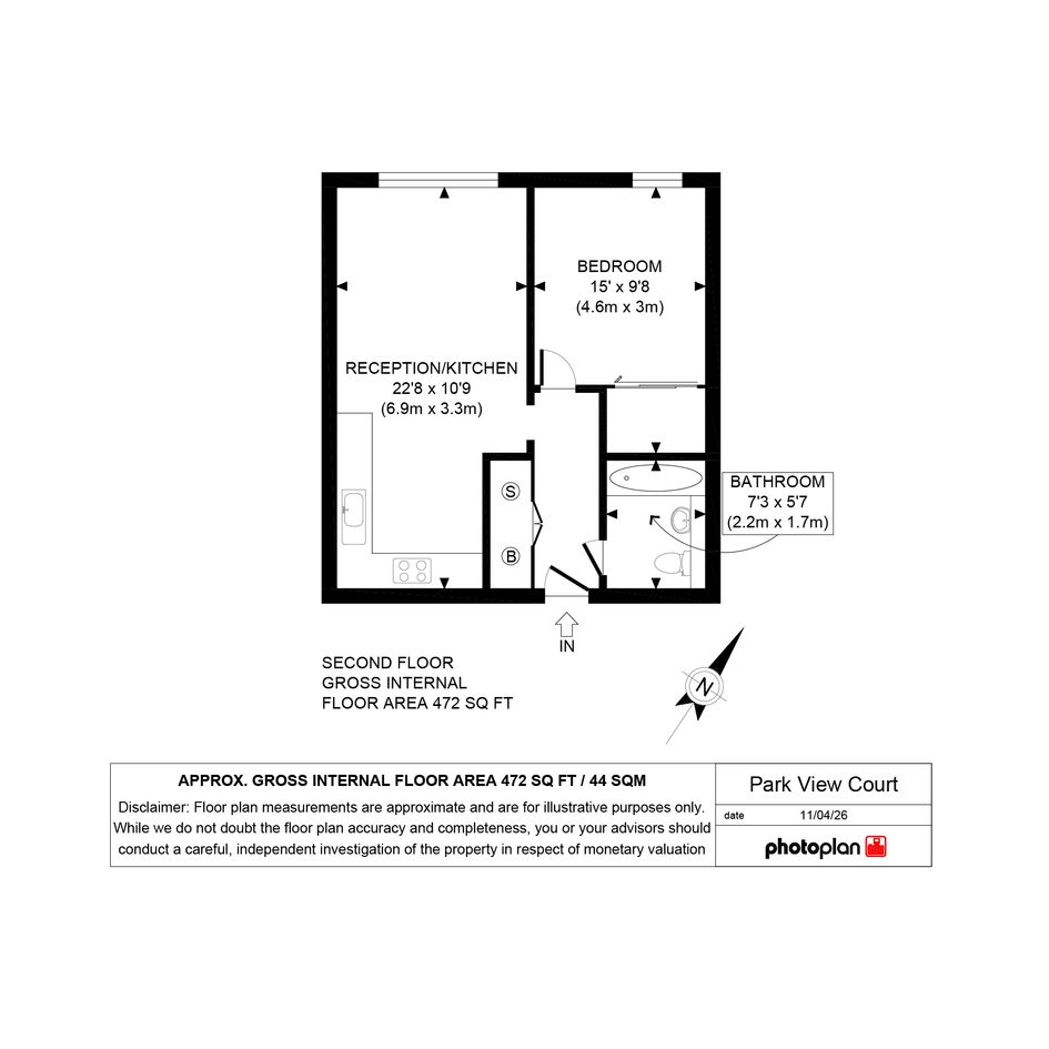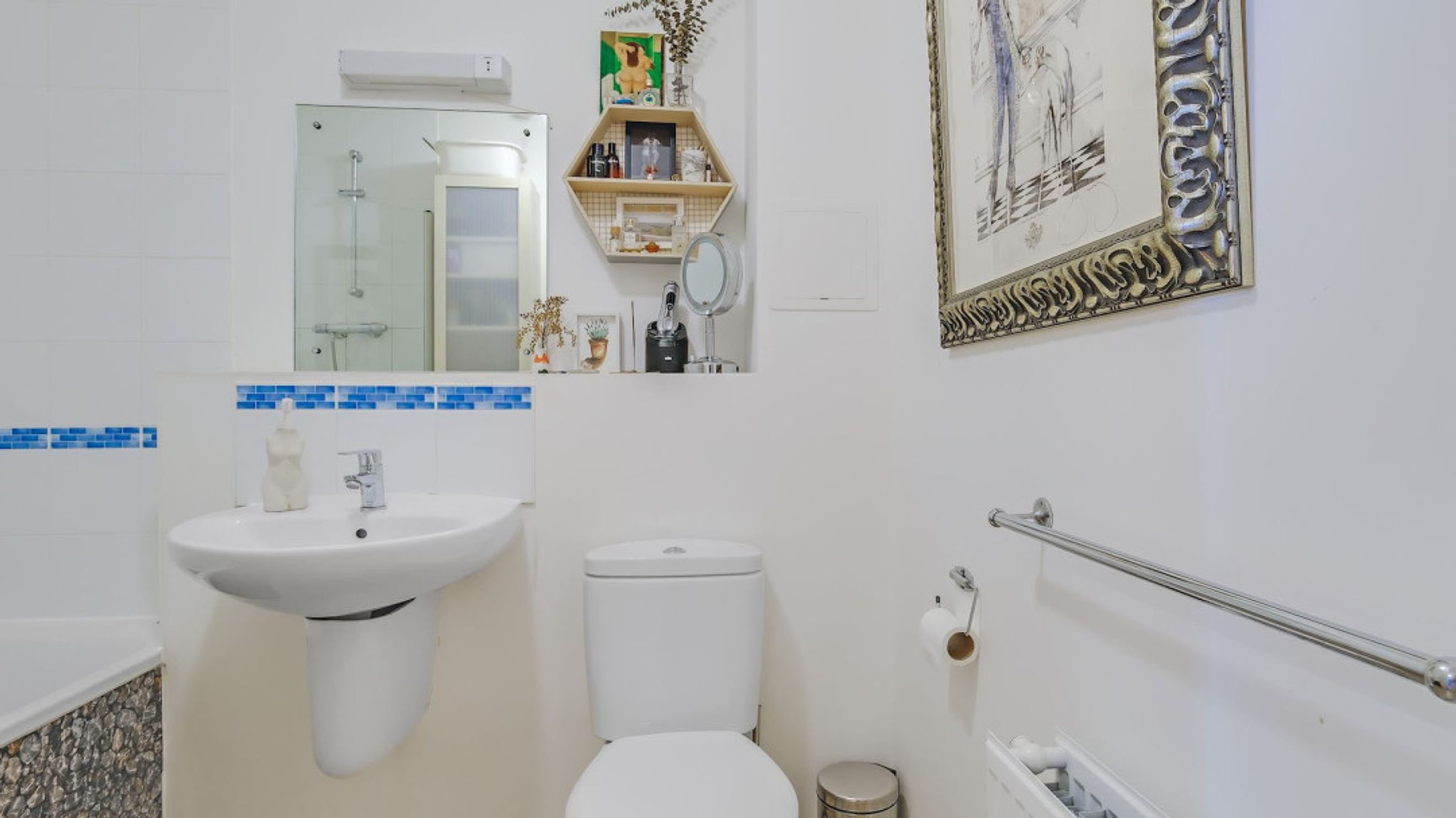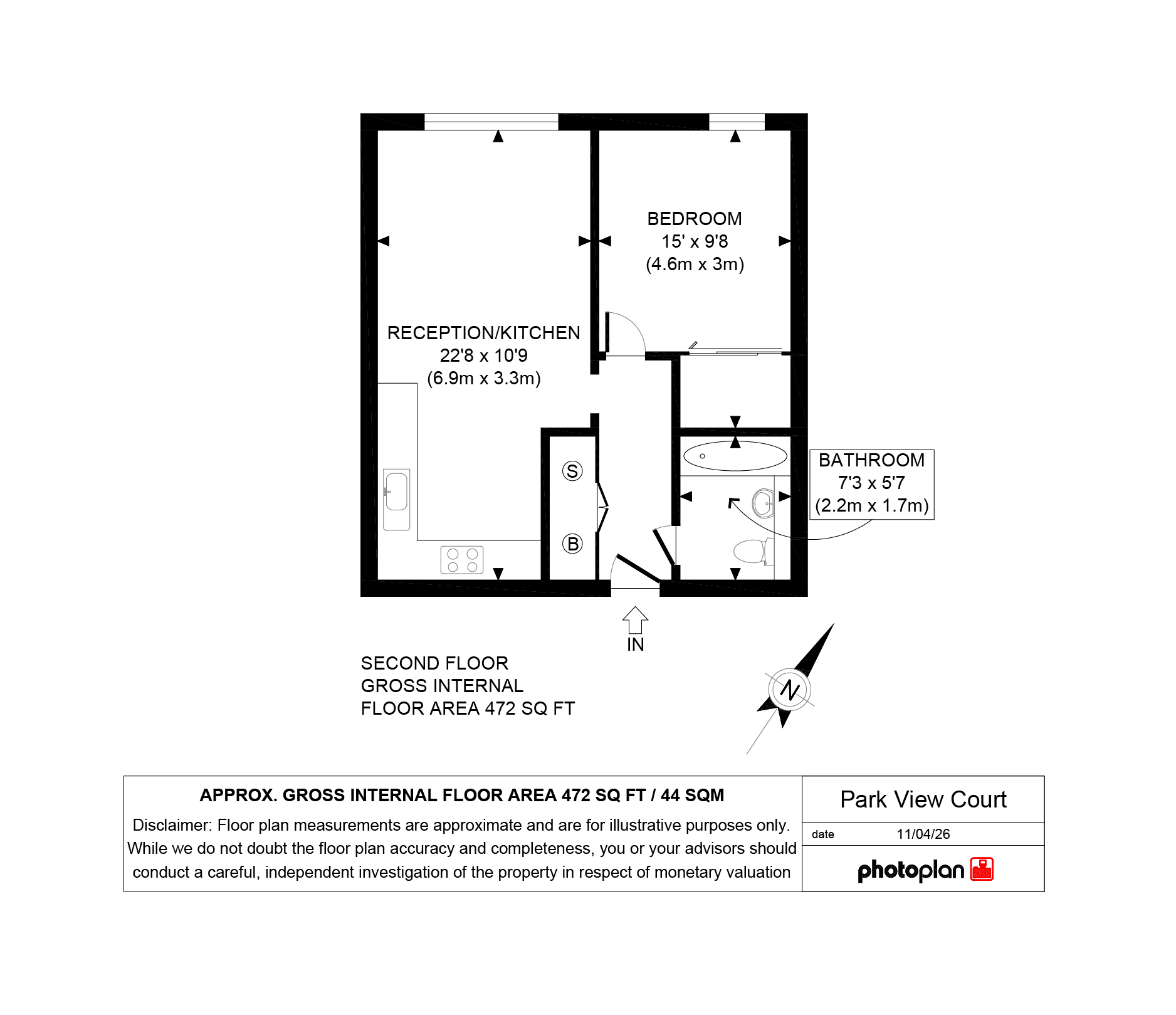 The bedroom is well-proportioned and serene, offering a comfortable retreat with good natural light, while the bathroom is neatly appointed and conveniently positioned off the hallway.