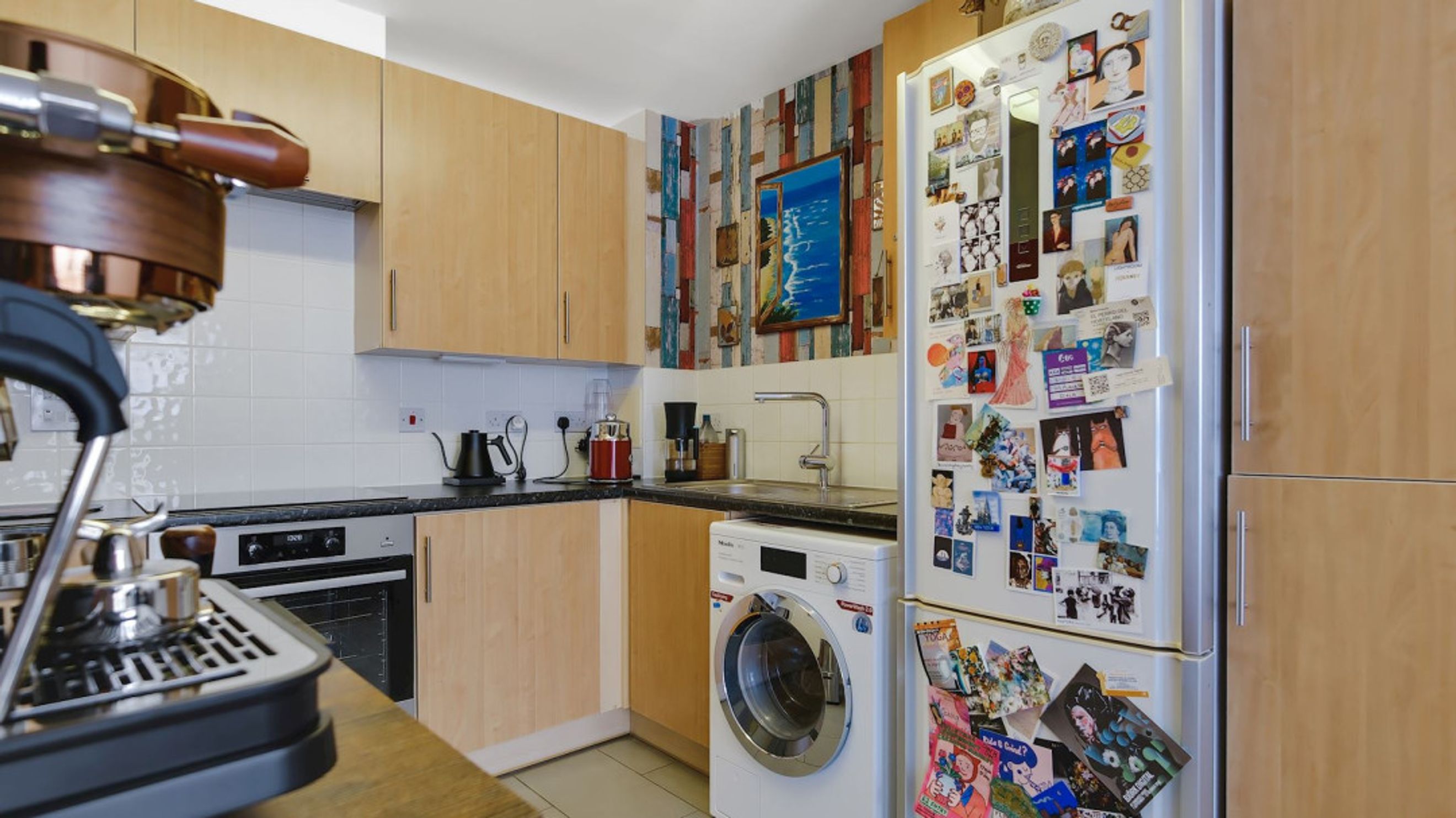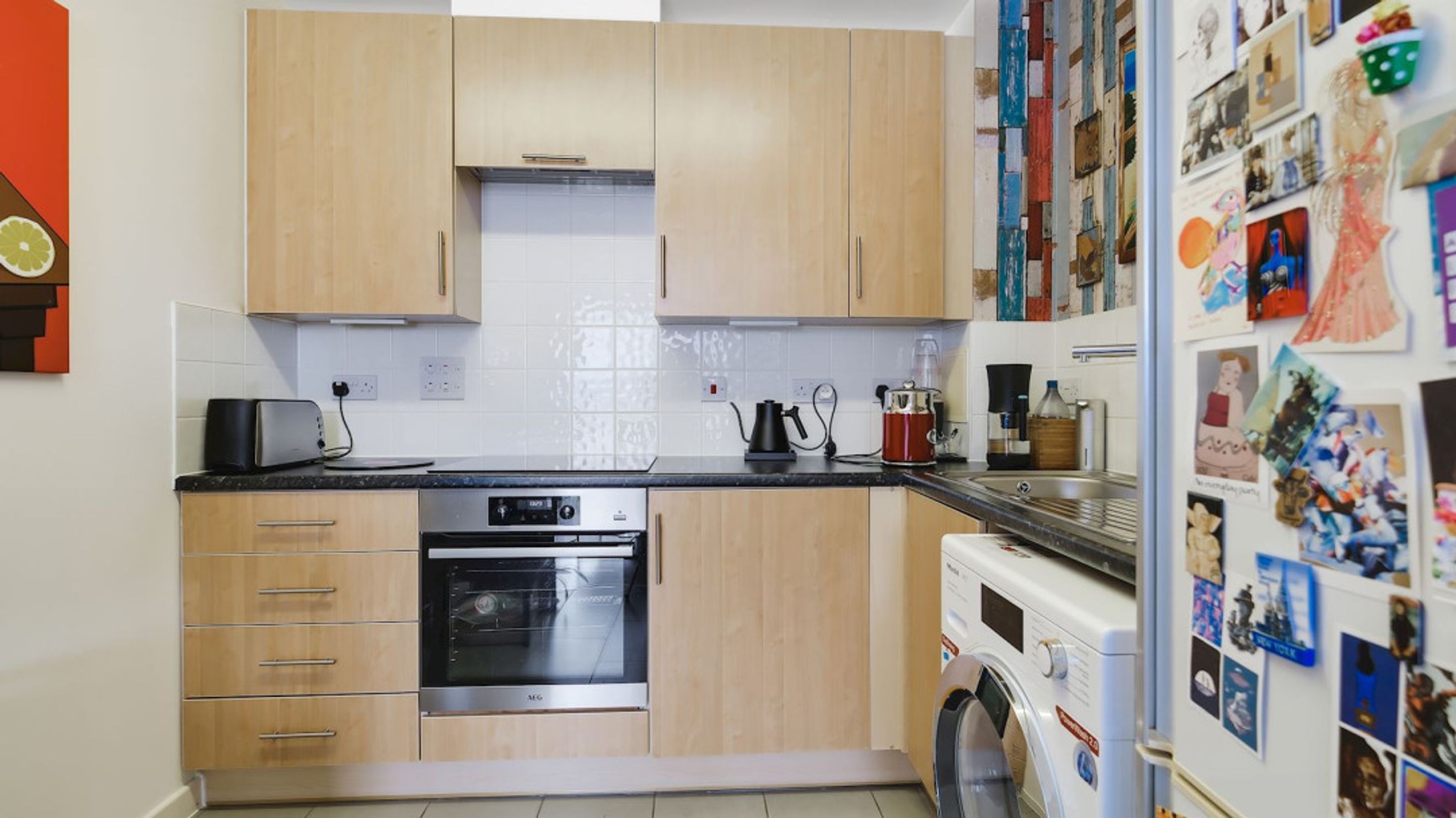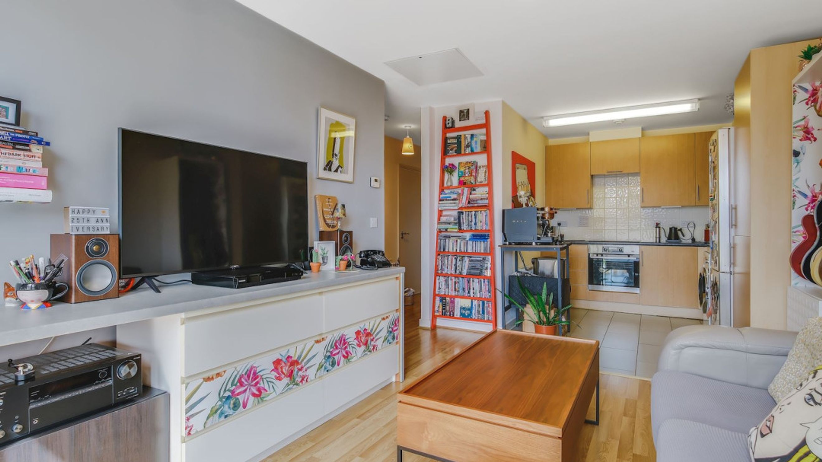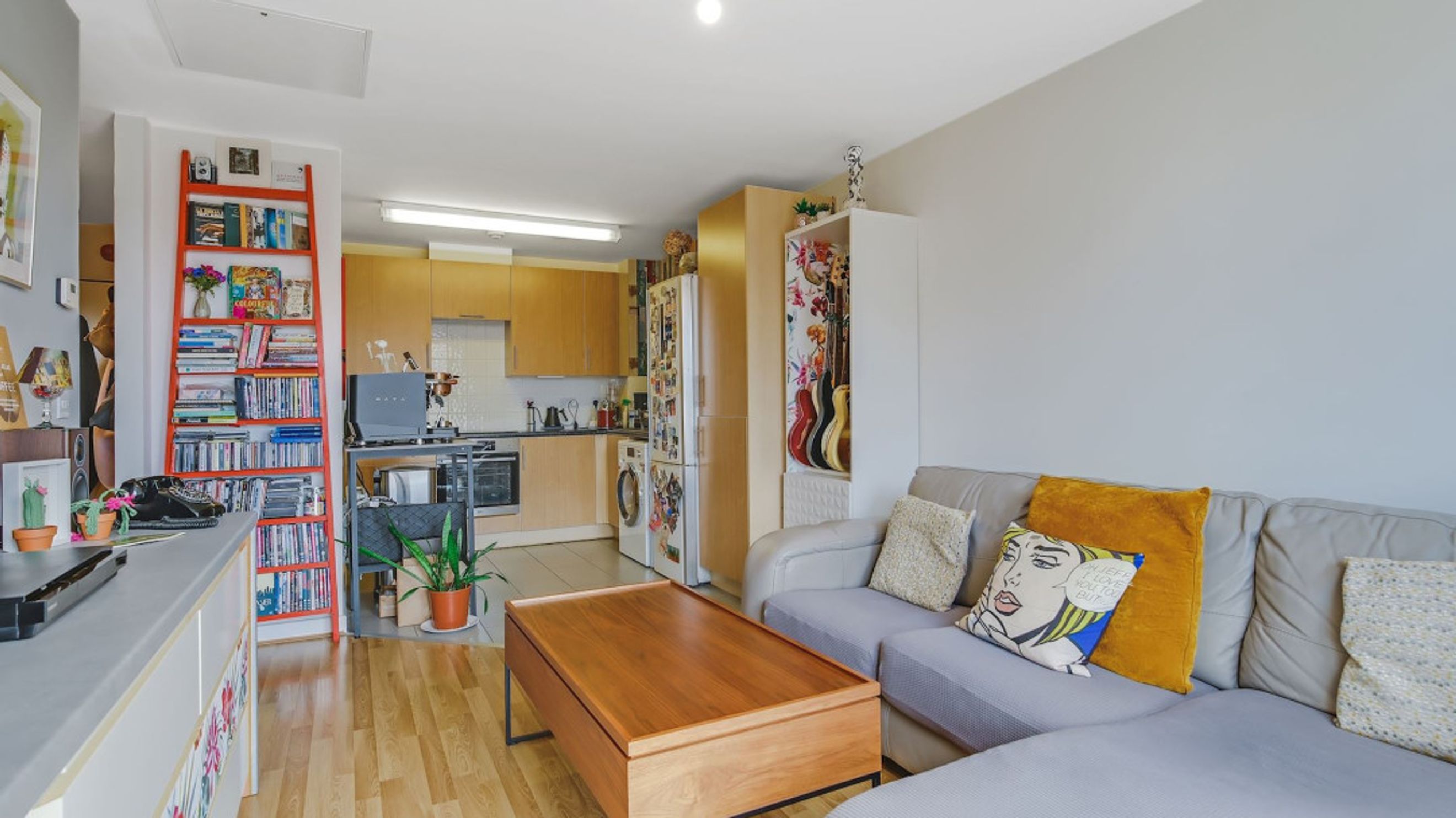 Tucked neatly into the corner, the kitchen is thoughtfully designed to create the feel of its own separate room without compromising the open-plan flow. It offers ample workspace and storage, making it both practical and visually distinct from the main living area.