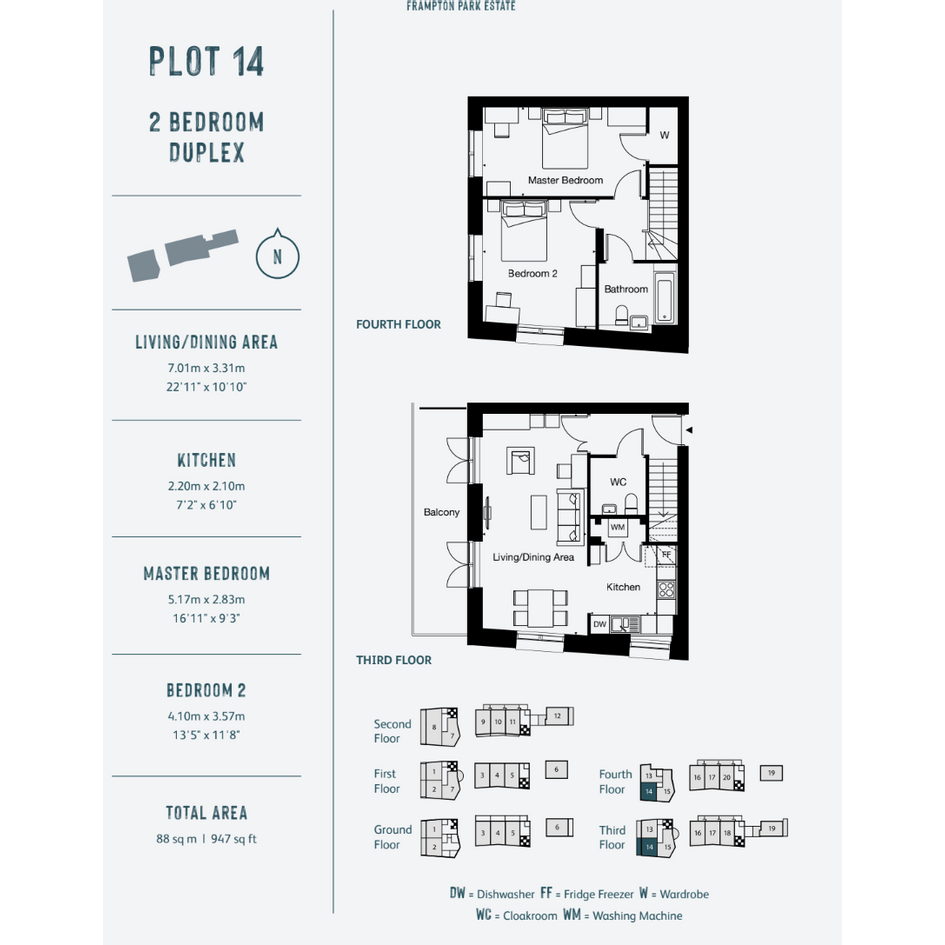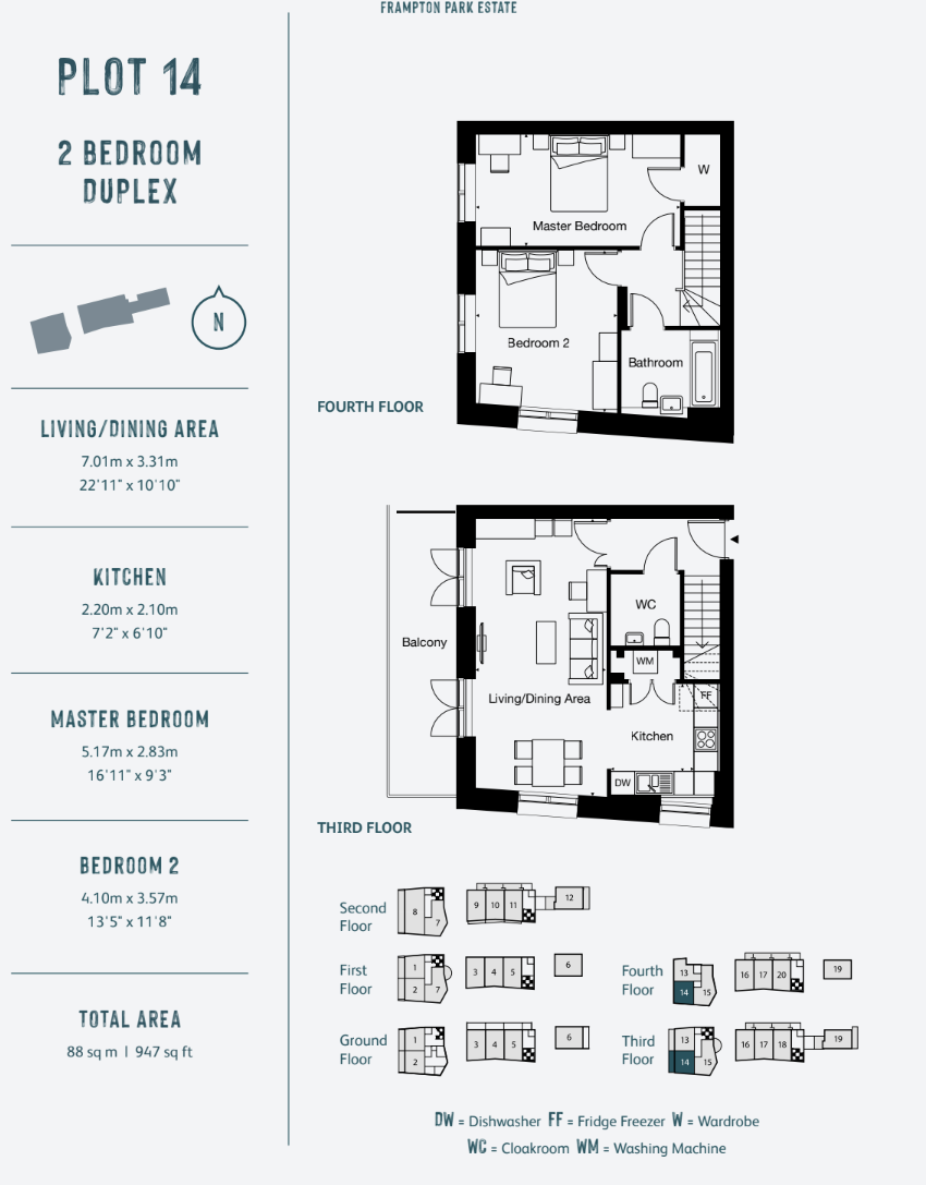We have a unique opportunity to offer for sale a spacious two double bedroom duplex apartment offering 947 sqft / 88 sqm of living space. The property is located within our popular Frampton Park development, built in late 2020. This property is located over the 3rd and 4th (top) floor of the building and benefits from a West facing balcony.