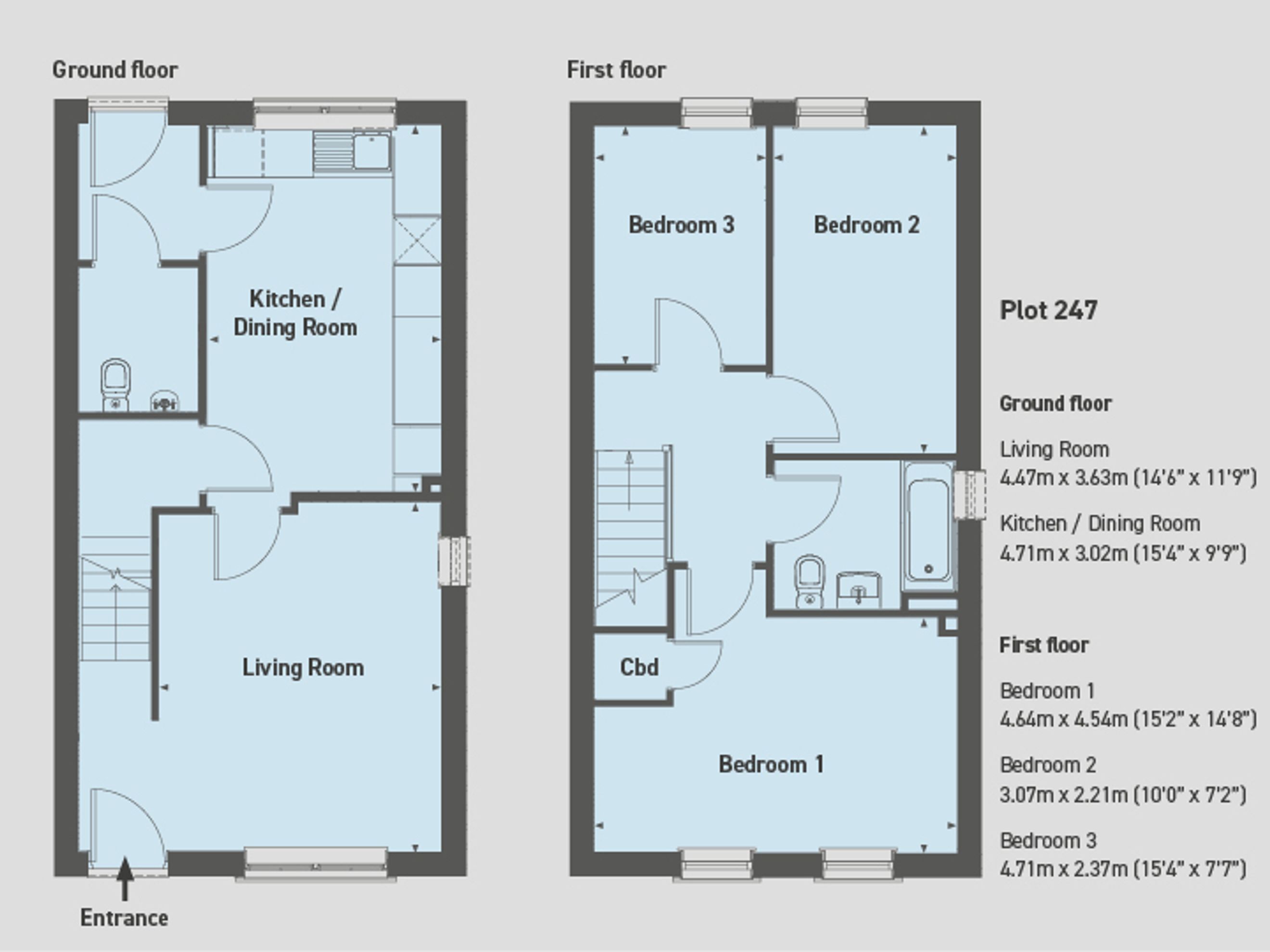 The three bedroom properties’ ground floor comprises a separate kitchen/dining room, living room and cloakroom with handbasin and WC. Upstairs are two double bedrooms, a family bathroom and a third, single bedroom which could also serve as a home office.