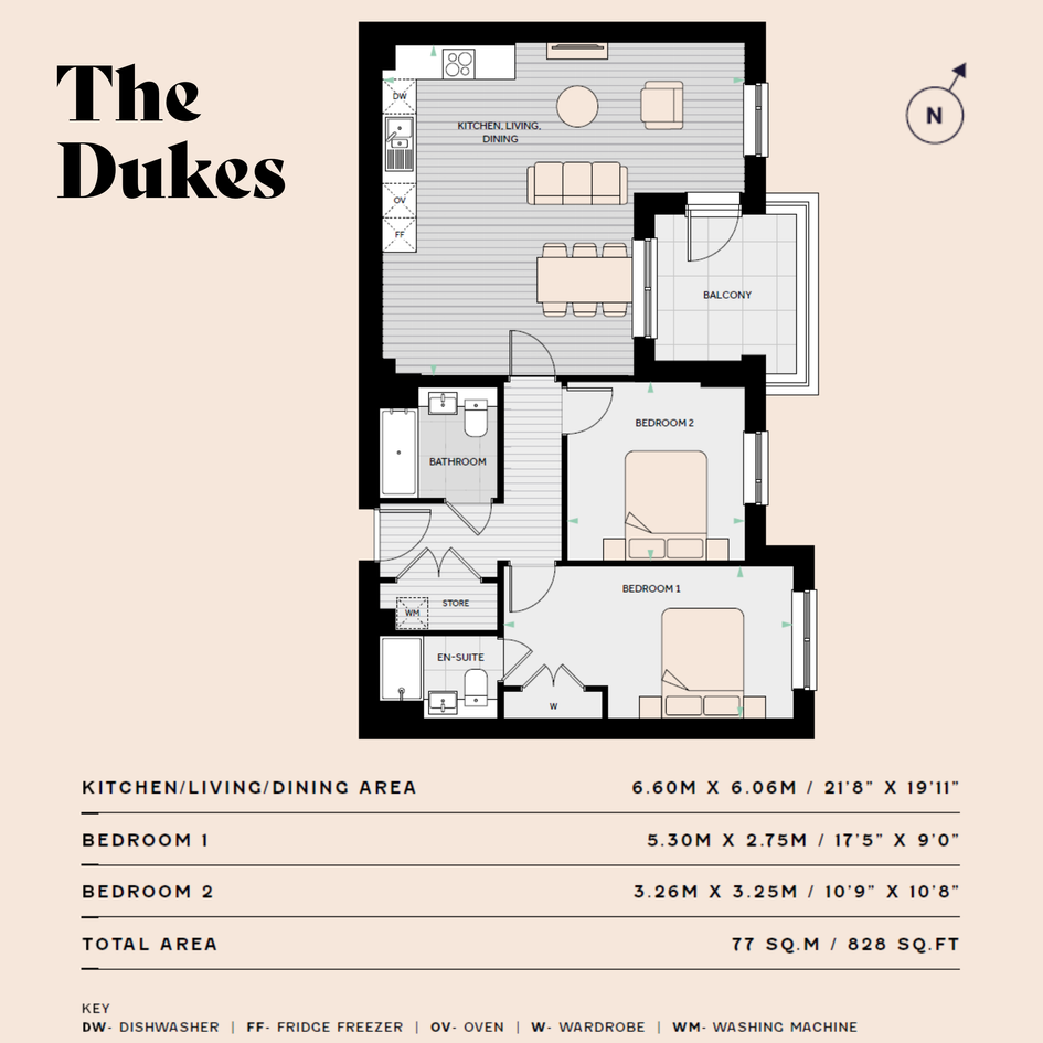 A spacious 829 sq ft two-bed fourth-floor Shared Ownership apartment with a private balcony overlooking the communal garden. The open-plan kitchen, dining and living area (6.60m x 6.06m) offers ample room to create distinct zones for relaxing, dining and entertaining. North-east facing windows fill the space with morning light, creating a bright, welcoming atmosphere.