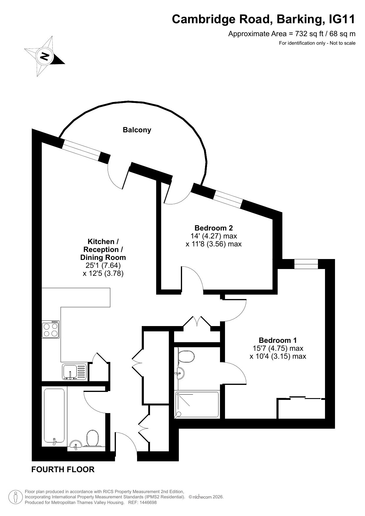 The property on the fourth floor comprises an entrance hall with built in storage, a living room with a open plan kitchen, two bedrooms (one en-suite) and a bathroom.