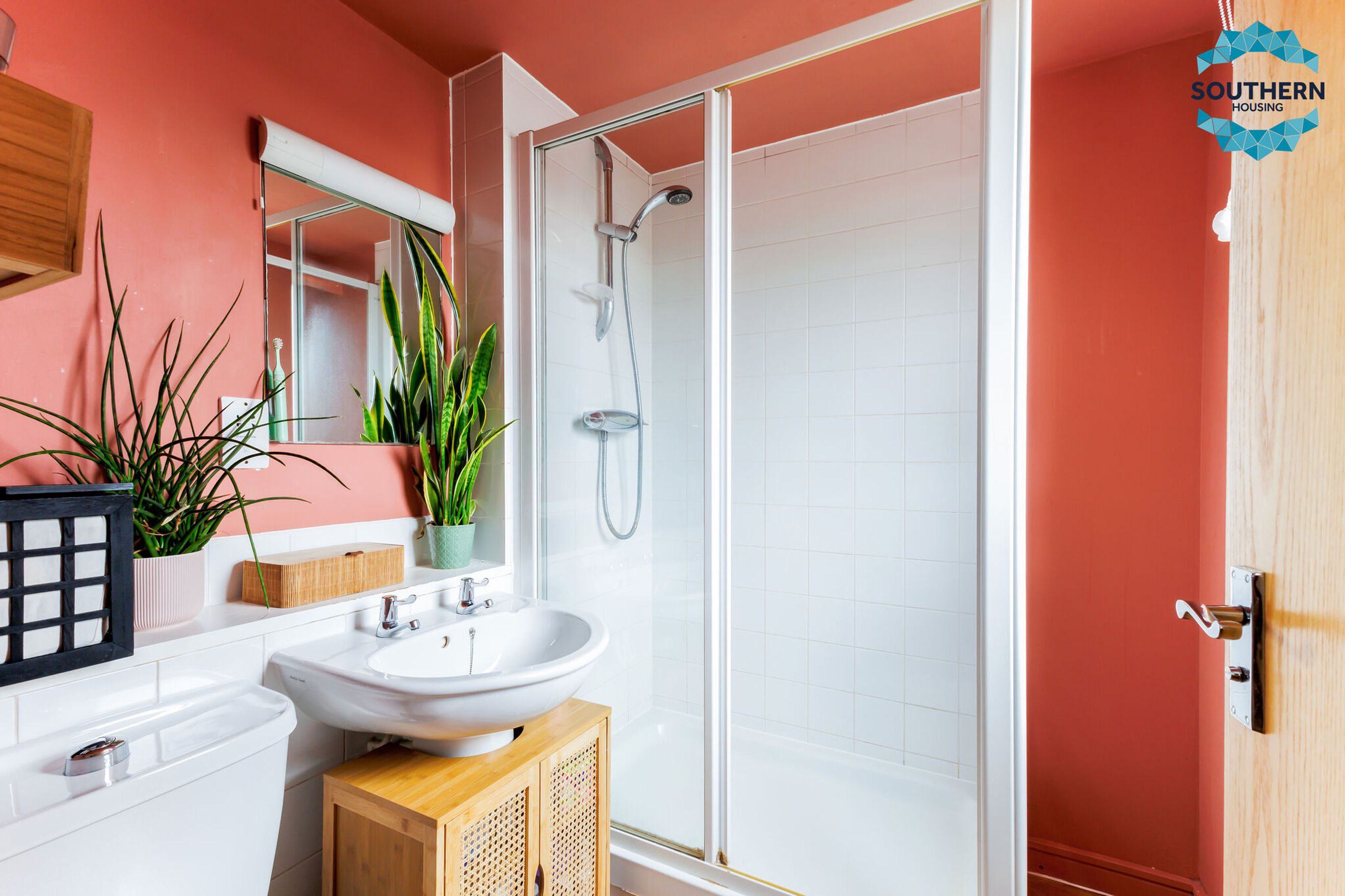 Finally, you have the second bathroom, which is a large family bathroom complete with a shower over the bath.