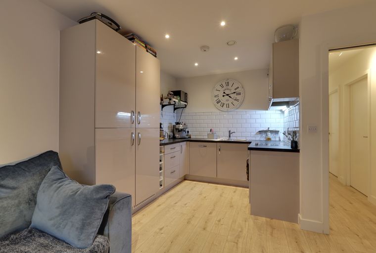 This modern two-bedroom apartment, located on the ninth floor of an 10-storey development, is now available through Shared Ownership.